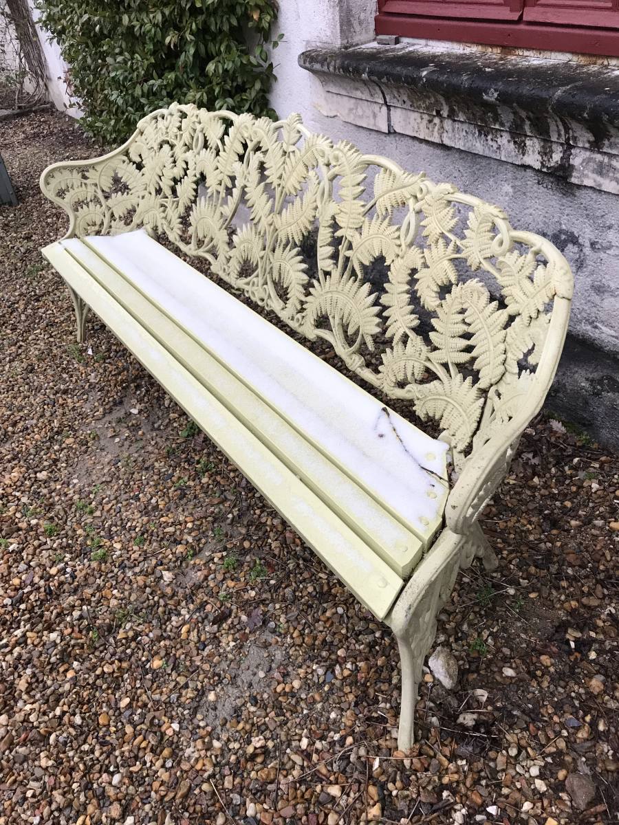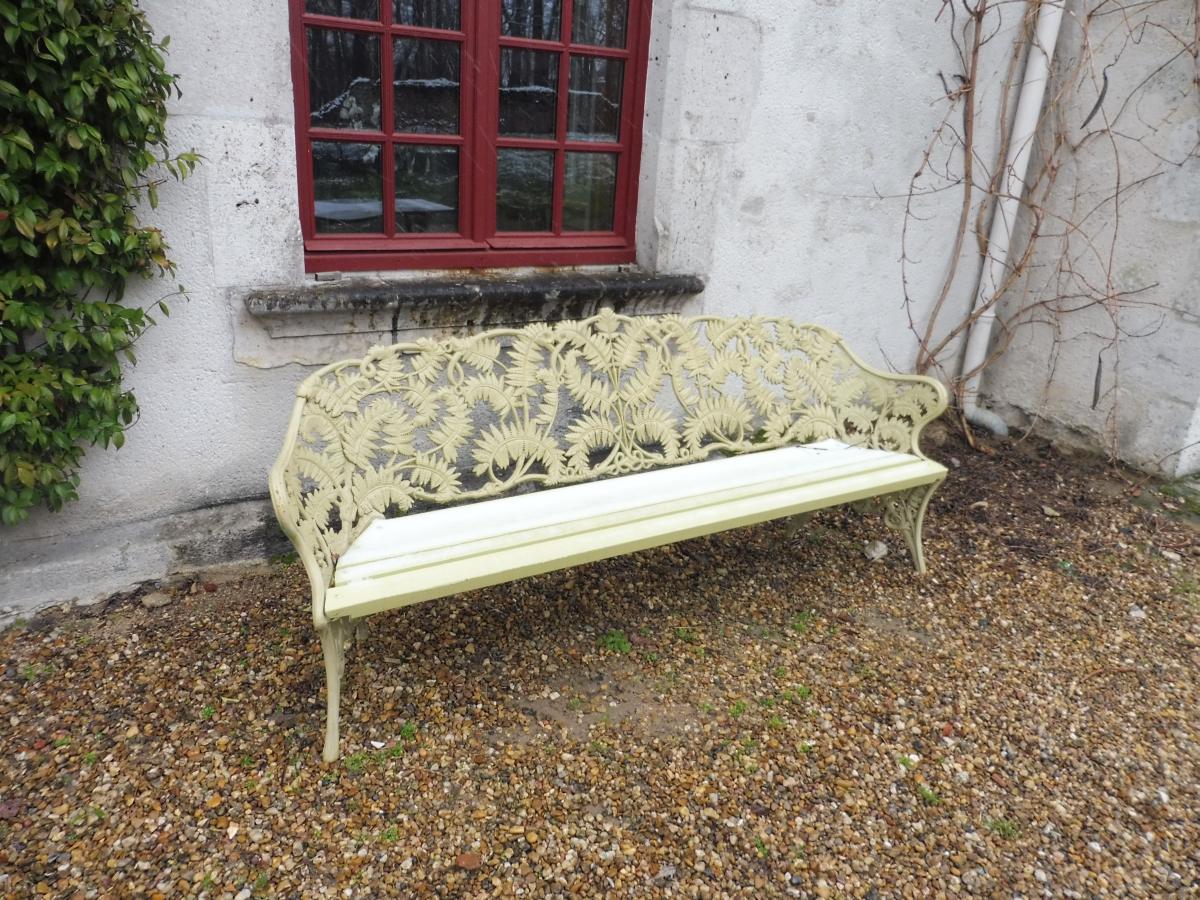 PAIRE de BANCS de jardin en fonte de fer, à décor de fougères. Fonderie du Val d'Osne.