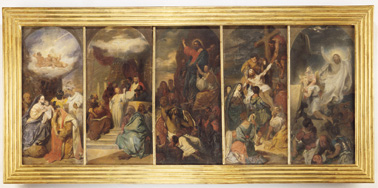 Les cinq esquisses, dotées de châssis distincts, sont regroupées dans un cadre commun.