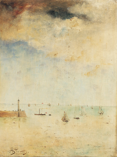 STEVENS Alfred (1823-1906). Entrée de port.Huile sur panneau. Signée en...