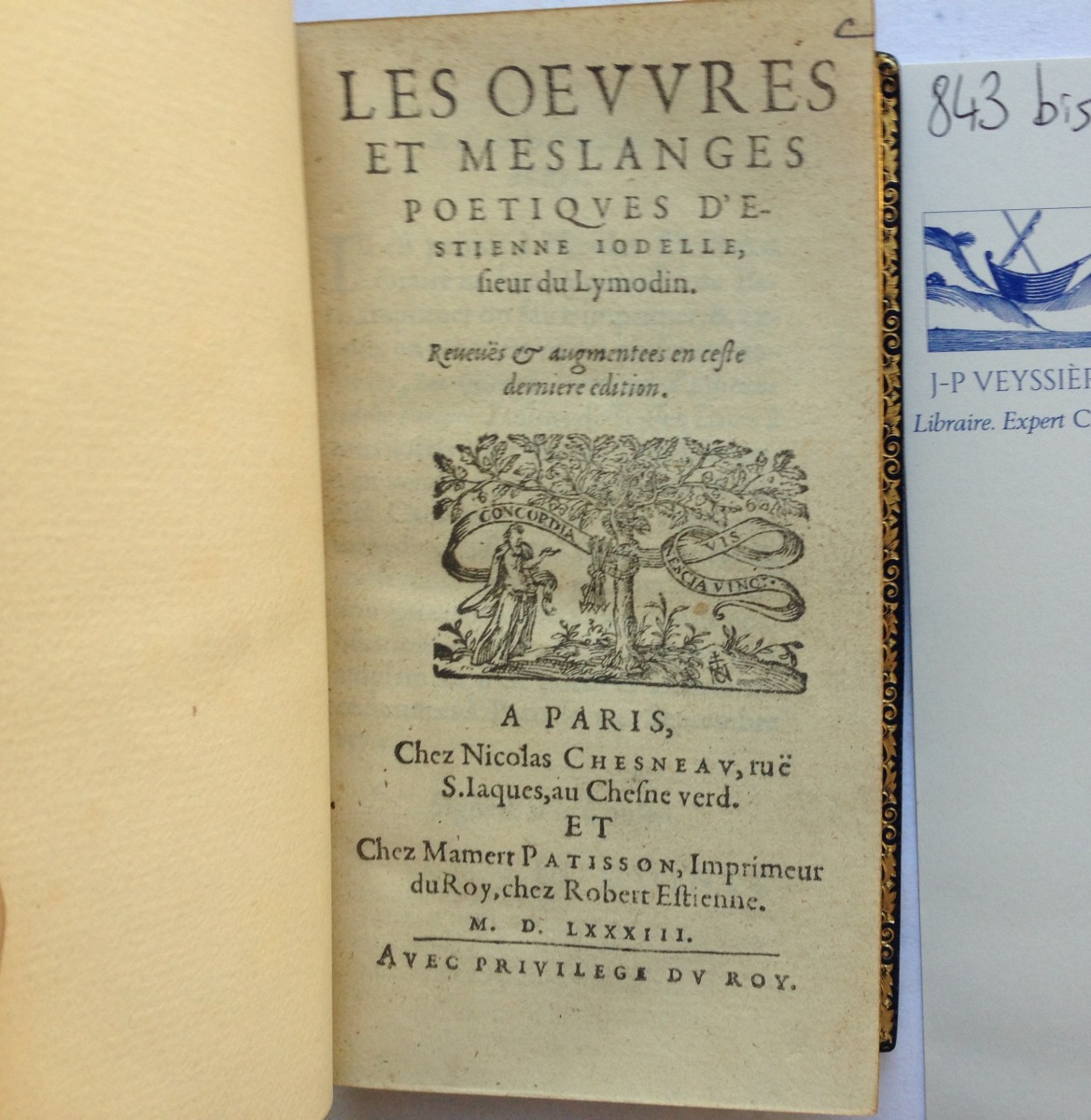 Les Oeuvres et Meslanges poétiques D'stienne Jodelle, Sieur du Lymodin.