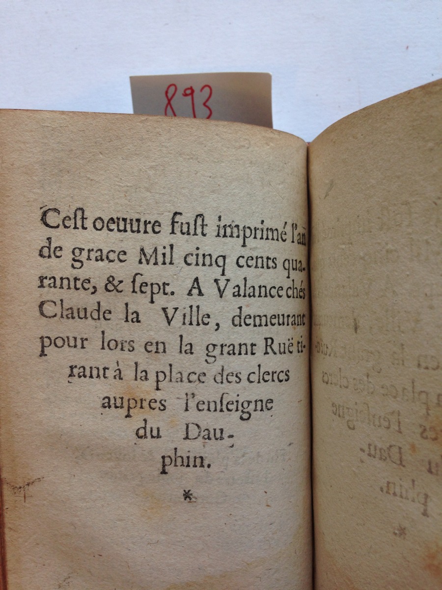 A Valence, Chez Claude La Ville, 1547.