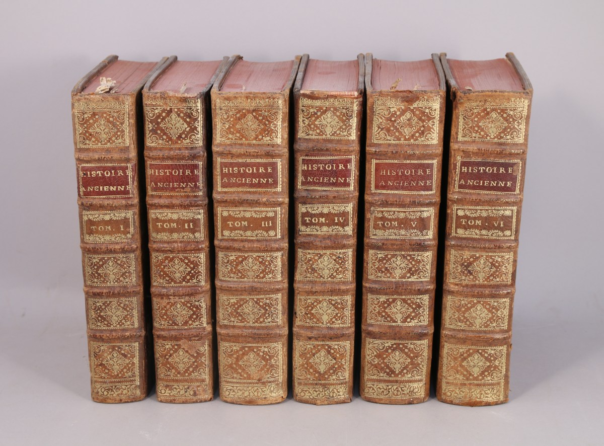 Agréable exemplaire de la première édition in-4° de cette Histoire ancienne de Rollin qui fit longtemps autorité. Frontispice, 13 cartes dépliantes, et 3 planches gravées.