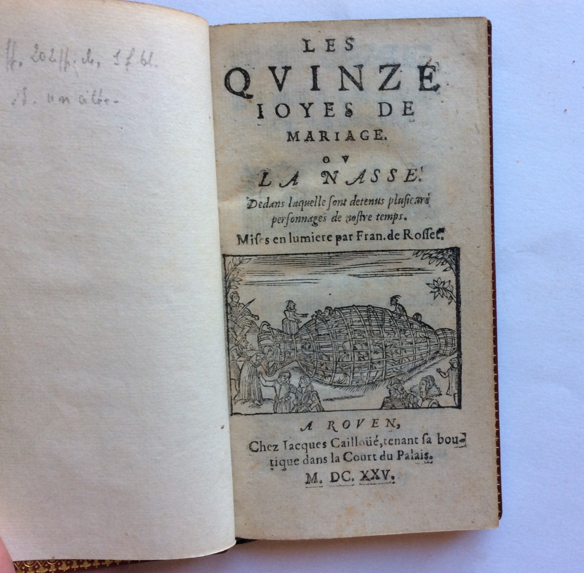 Les Quinze Joyes de Mariage . Ou la Nasse, dans laquelle sont détenus plusieurs personnages de nostre temps. . Mises en lumiere par Fran. de Rosset.