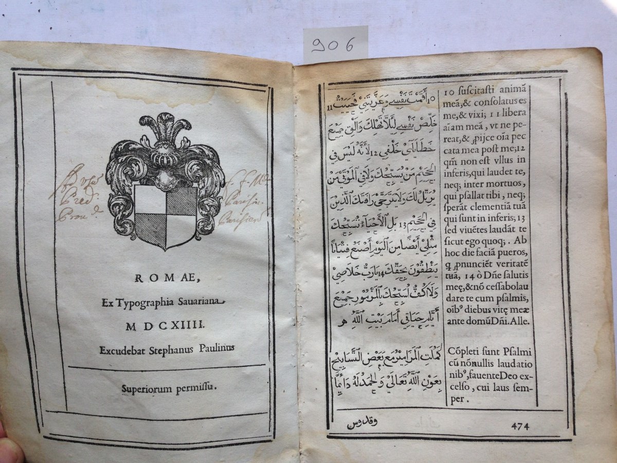 Quoiqu'il en soit, c'est à Rome que Savary de Brèves fit imprimer dans sa propre maison, et à ses frais (et sans doute aussi aux frais du pape Paul V) avec le concours des Maronites du Mont-Liban Scialac et Sionite, une traduction arabe du Catéchisme de Bellarmin, et son Psautier arabe-latin, qui porte la mention "Ex Typographia Savariana. Stephanus Paulinus excudebat" -ce qui semble induire qu'Etienne Paulin eut peut-être sa part dans les poinçons. Le Psautier aurait du paraître en premier, mais il resta longtemps sous presse, l'Inquisition tardant à donner son Imprimatur.