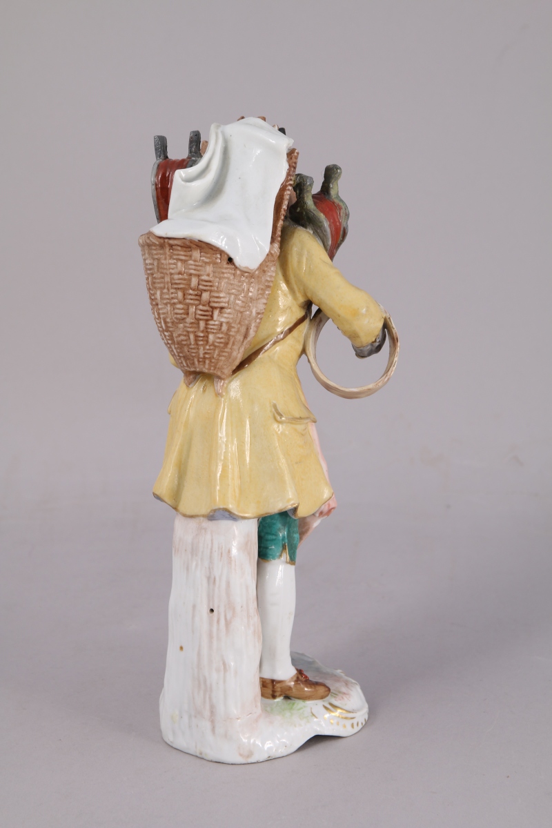 JOINT : SUJET en porcelaine polychrome, vendeur d'eau ambulant. Haut. 17,5 cm. (importantes restaurations)