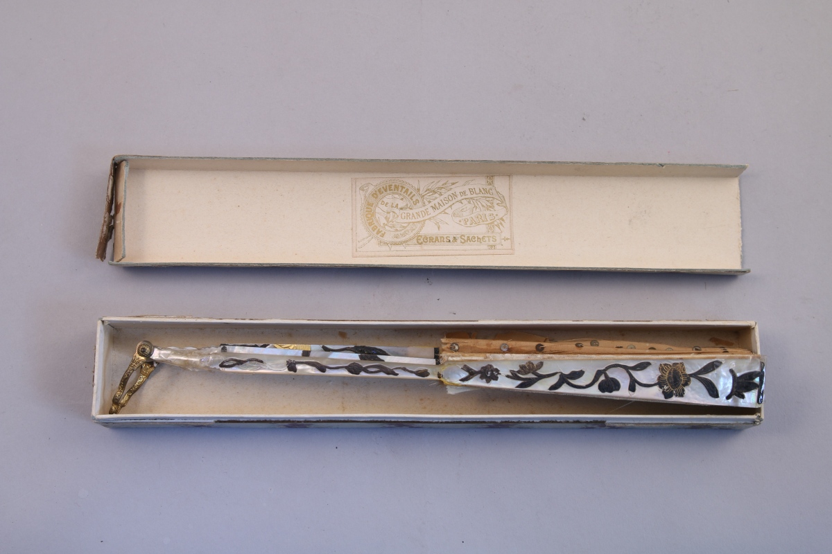 Avec son étui d'origine "Fabrique d'éventails de la Grande Maison de Blanc, Paris".