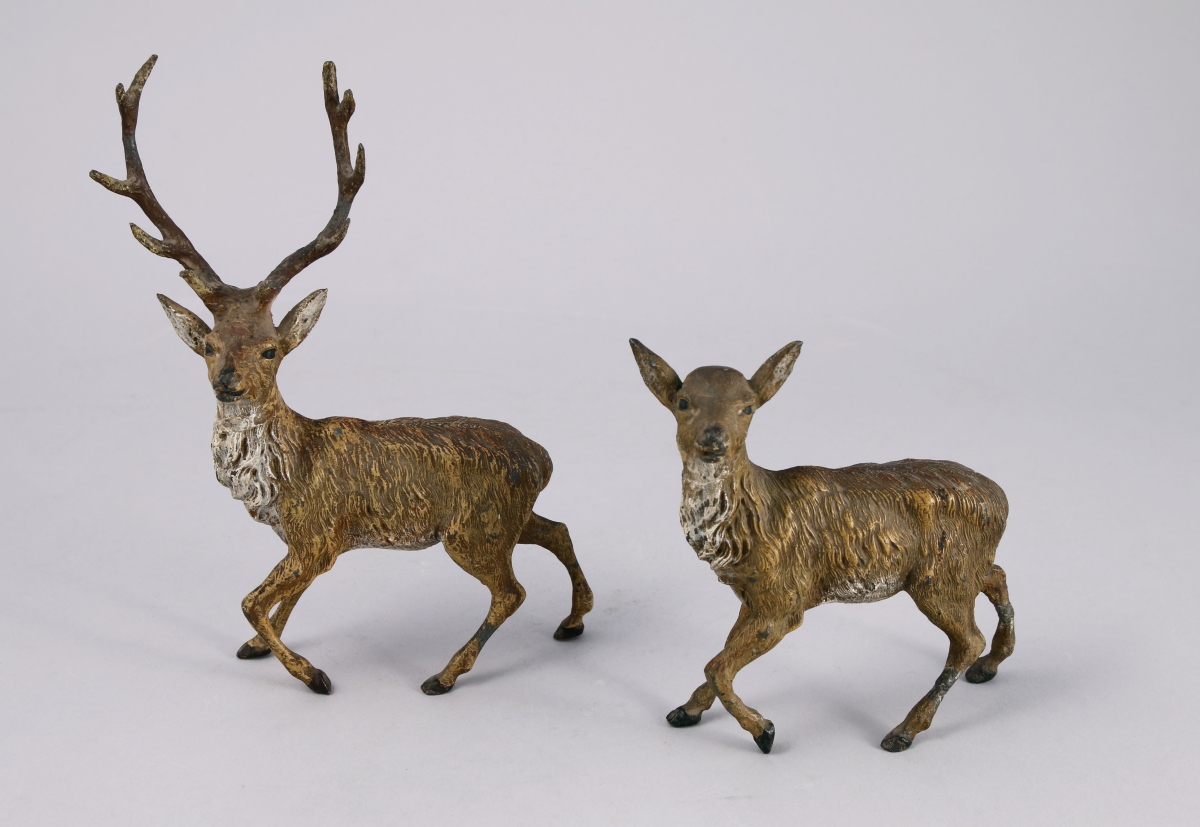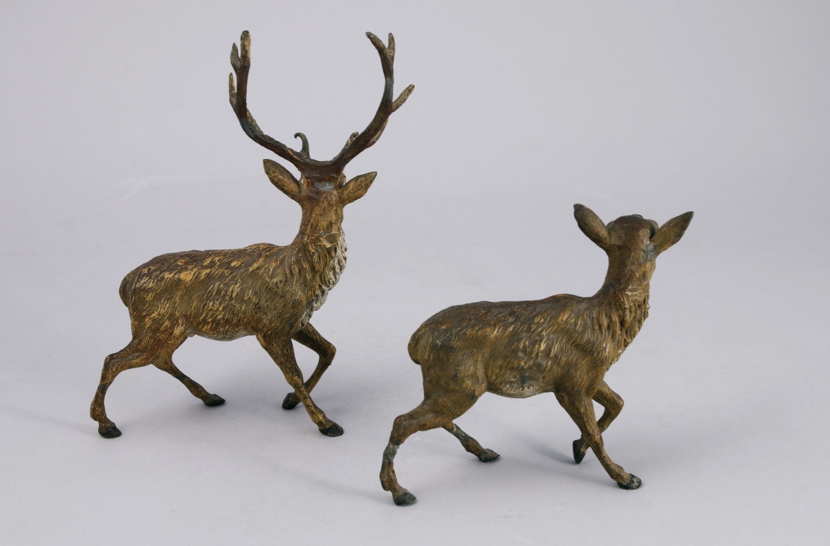 Dans le goût des BRONZES DE VIENNE.CERF et BICHE.Bronze polychrome.Hauteur:...