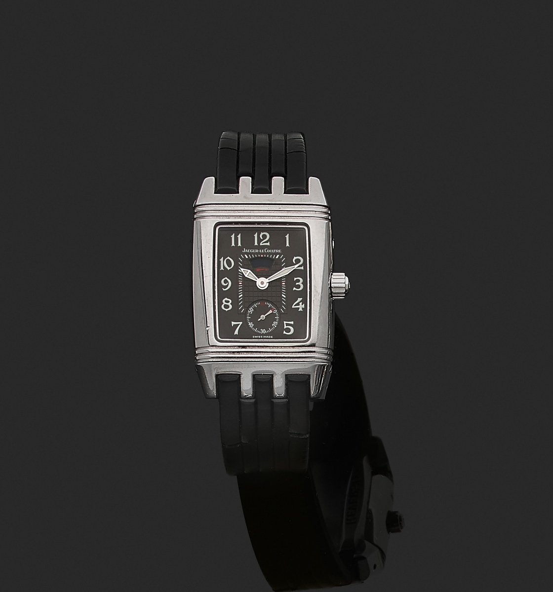 JAEGER LECOULTRE 'Reverso Night & Day'. Stainless steel reversible Lady's WRIST-WATCH set with DIAMONDS.