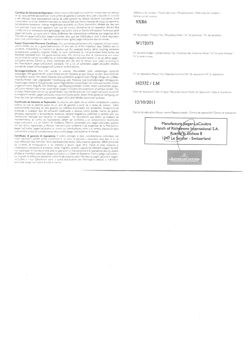 Documents joints : "Repair garantie certificate" et "extrait des archives".