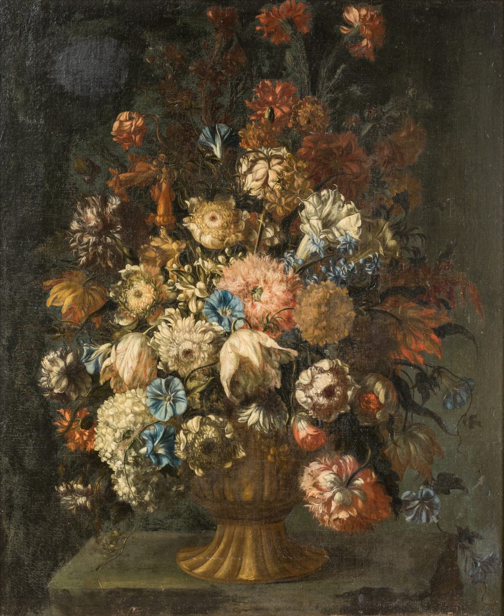 18th century GERMAN School. Circle of Johann Rudolf BYSS. Flowers cut in a vase. Canvas. From the collection of the château de Villedieu-en-Berry.