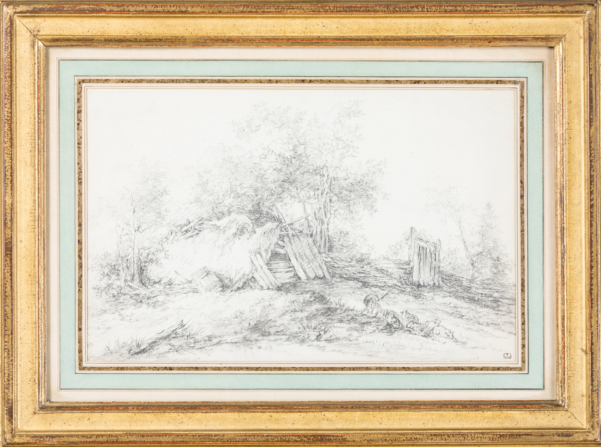 Deux dessins, un annoté " Boucher " en bas à gauche et très insolé.