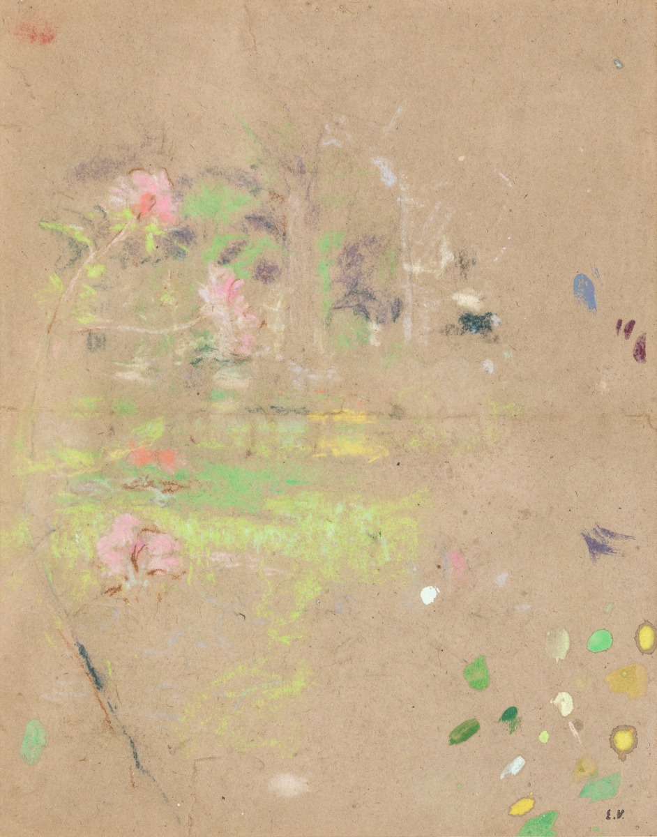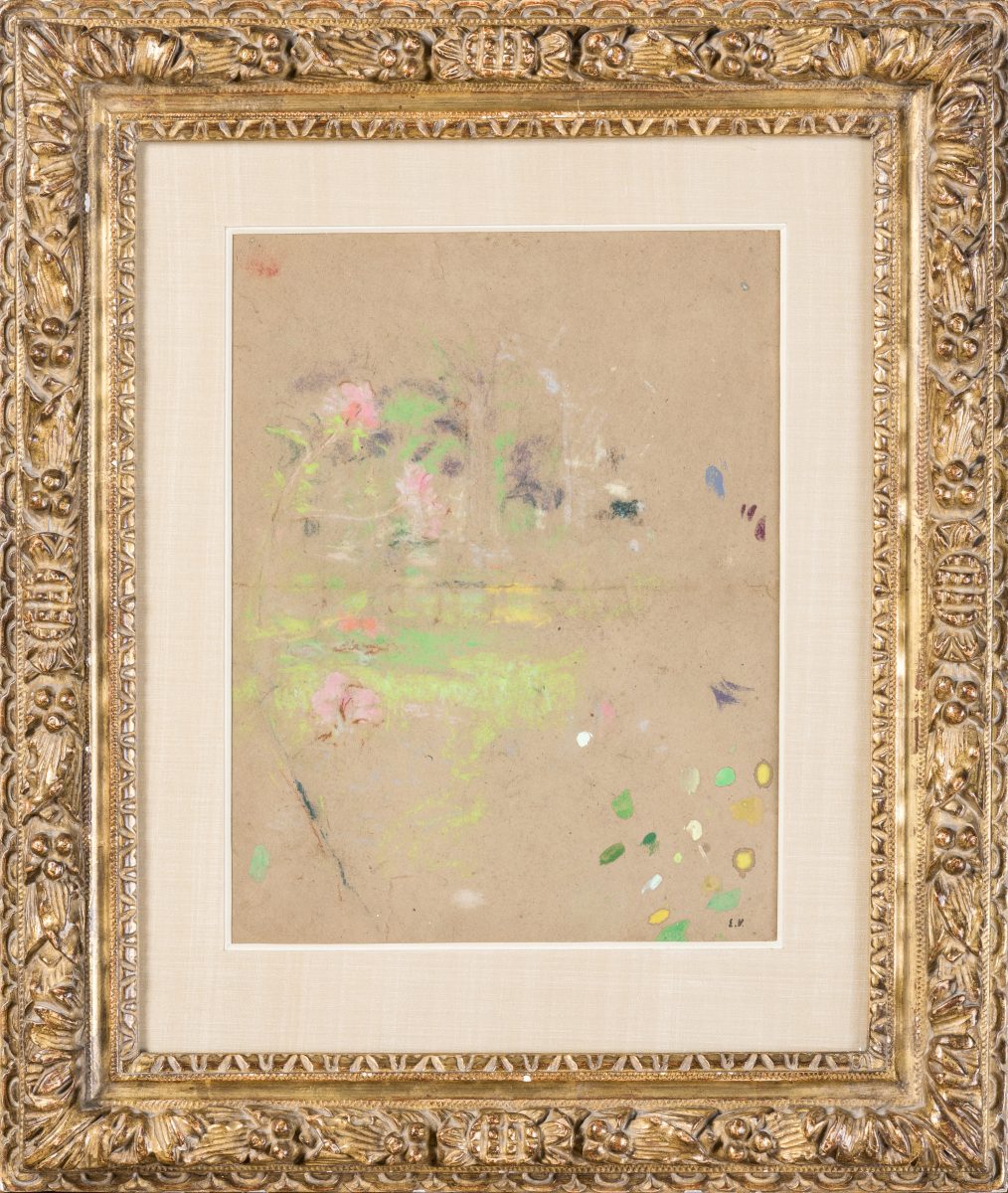 Edouard VUILLARD. Flowers alongside the pond. Pastel. Monogrammed stamp lower right.