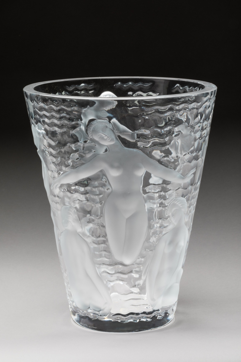 Bibliographie : Félix Marcilhac, "René Lalique, Catalogue raisonné de l'oeuvre de verre", éd. de l'Amateur, Paris, 1994 précise p. 470 : "dénomination ("Ondines") reprise après 1951 pour un autre modèle de vase plus grand (24 cm) - modèle non identifié". Il s'agit de notre vase.