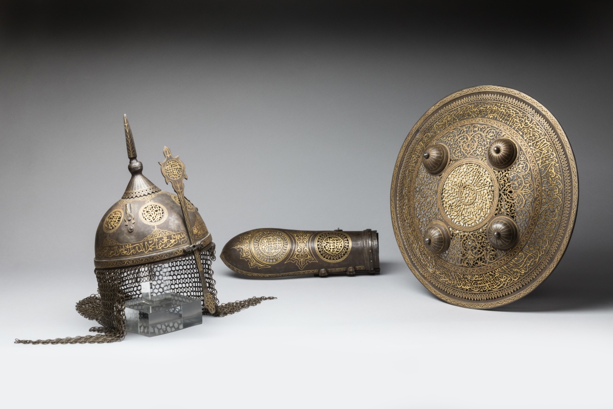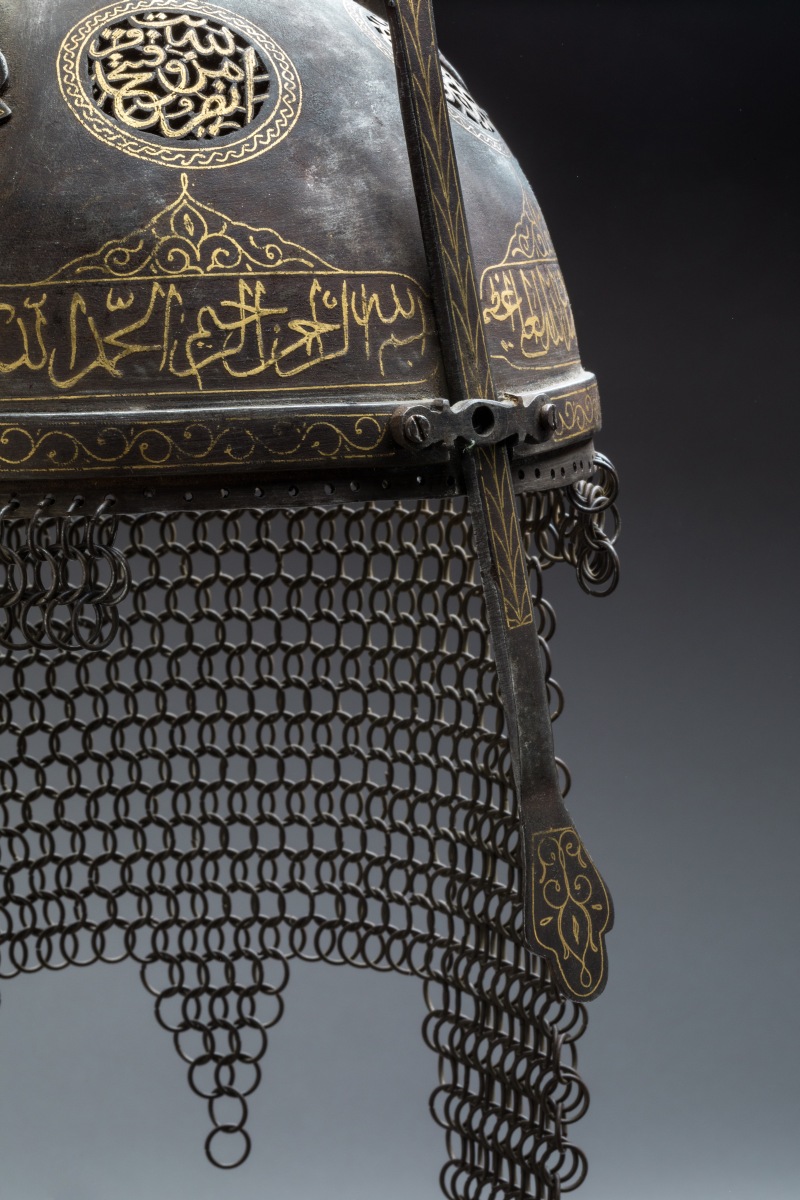 INDO-PERSIAN ARMOUR comprises a 'Kulâh Khud' HELMET, a six-teeth AVENTAIL, a 'Bâzuband'