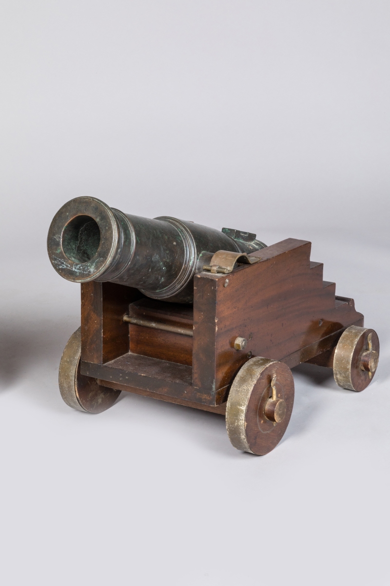 Montés sur des affûts postérieurs, quatre roues en bois cerclées de cuivre.