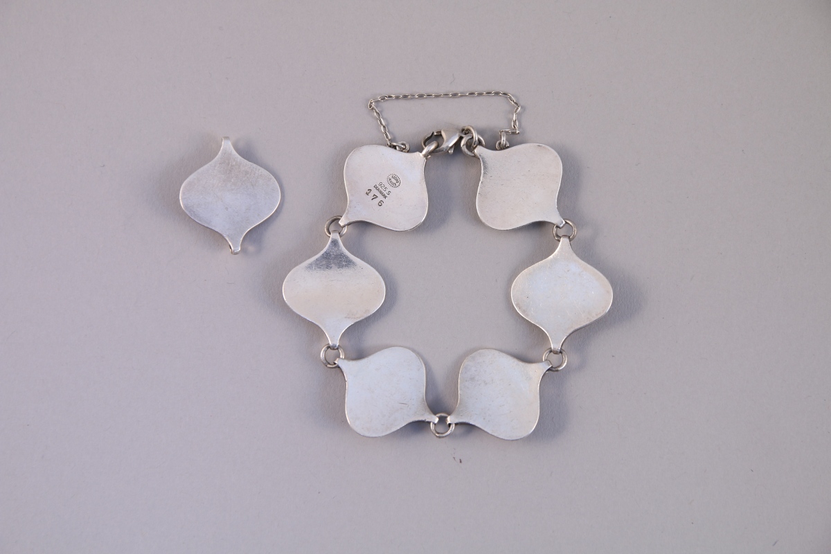 en argent à six maillons en forme de feuille. Un maillon détaché supplémentaire joint.