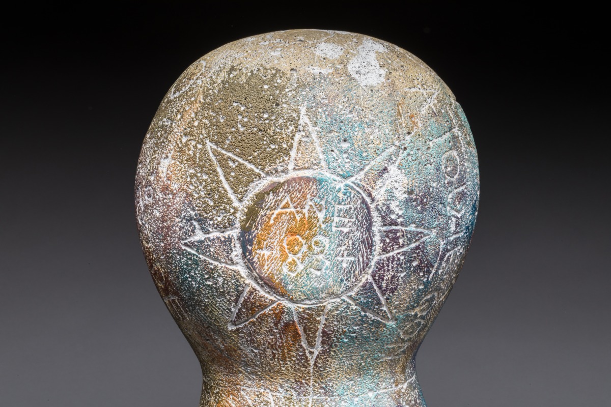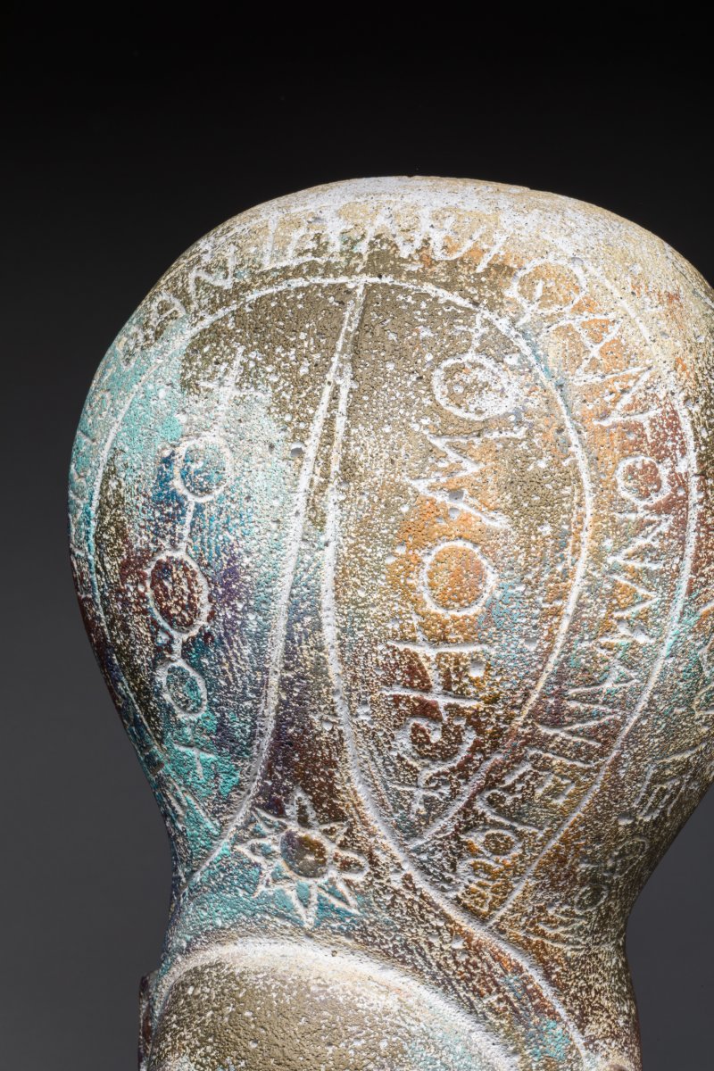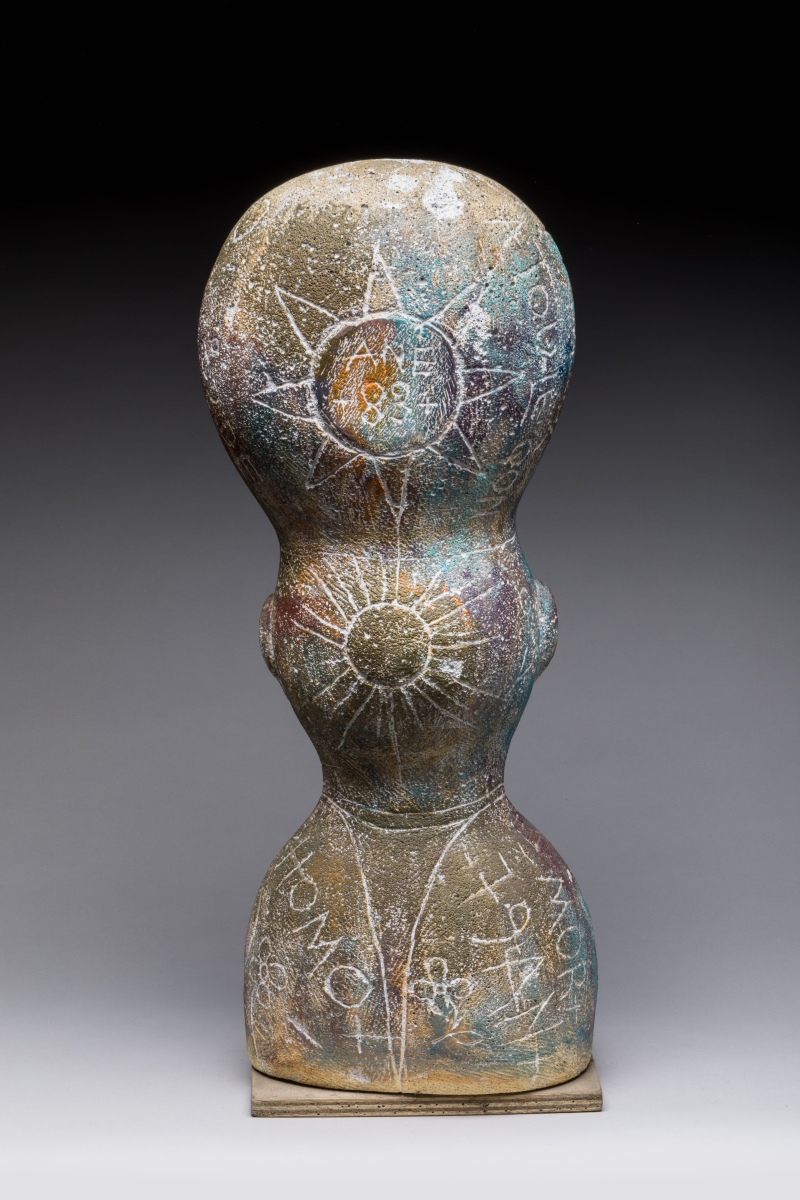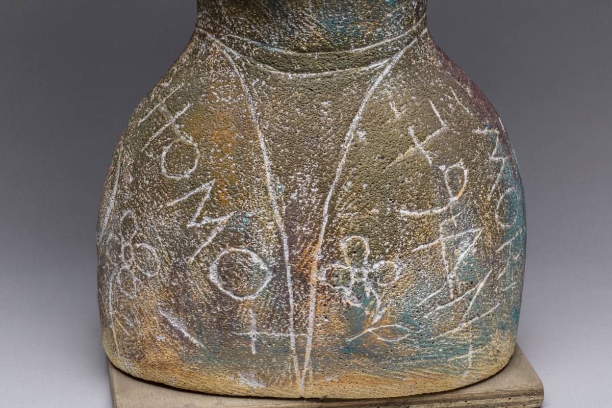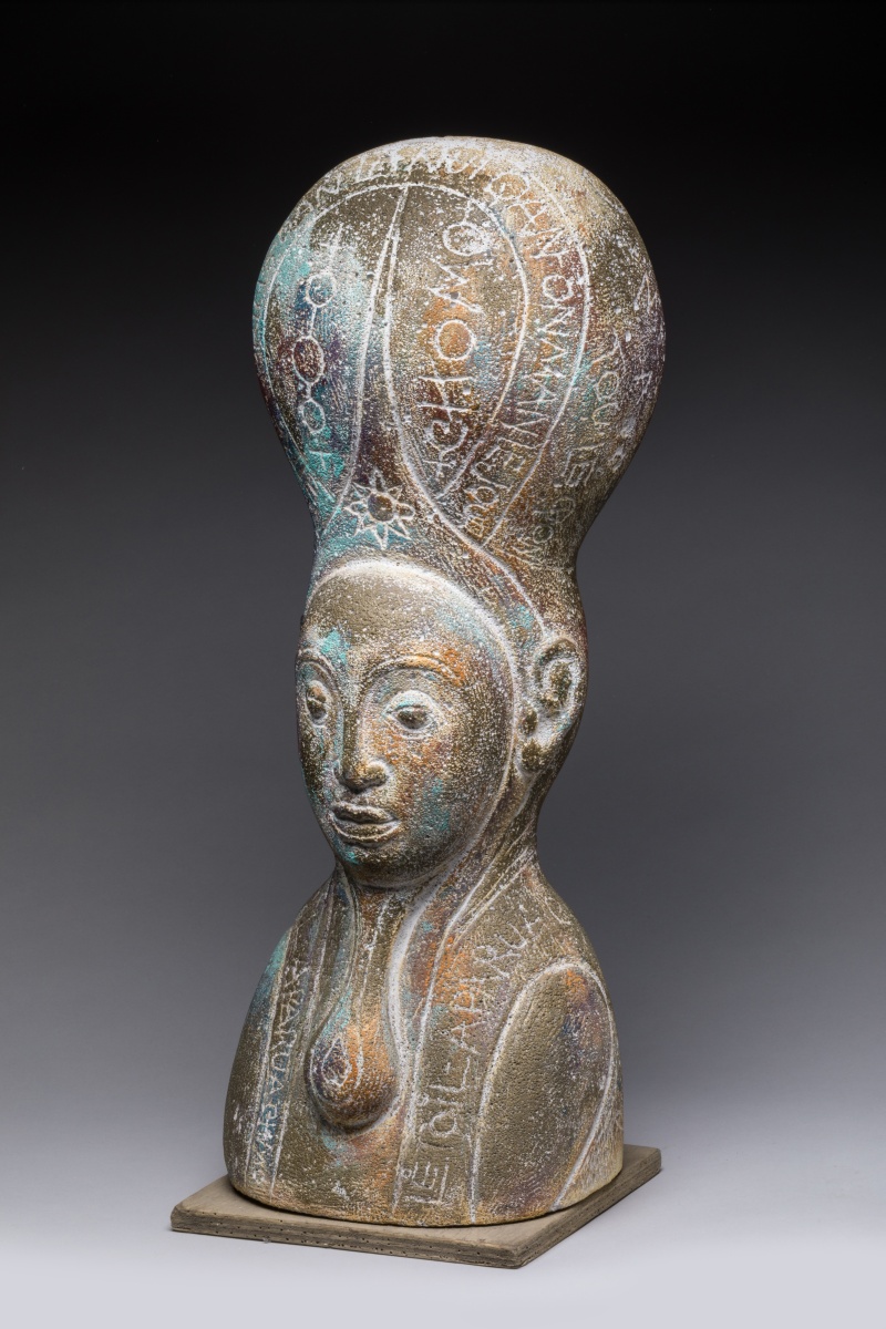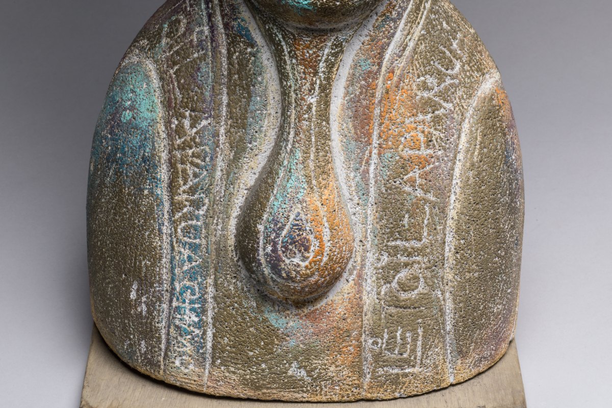 en siporex à patine ocre, gravée, signée et datée "Ané 83".