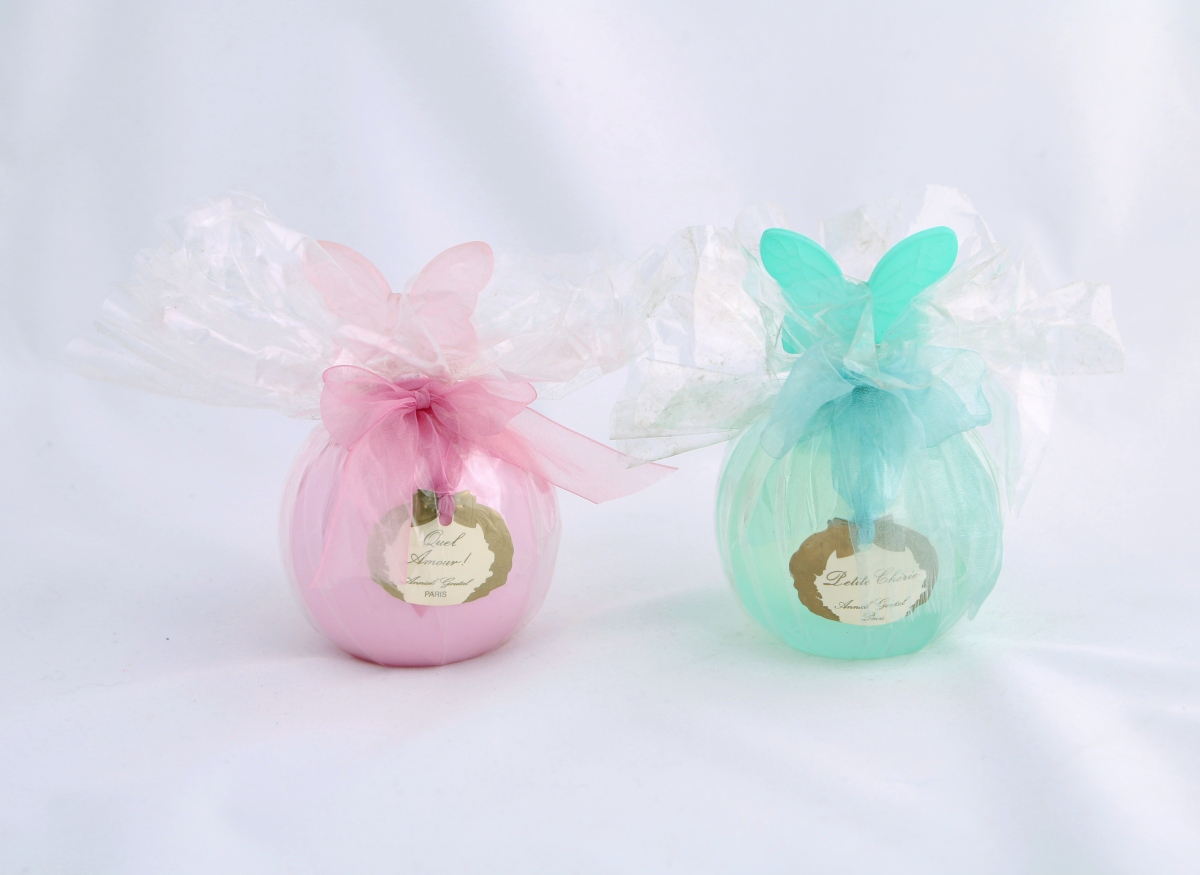 Deux modèles identiques à celui du lot précédent mais de couleur rose pour l'un et vert pour l'autre, habillés de tulle, scellés avec PdO.
