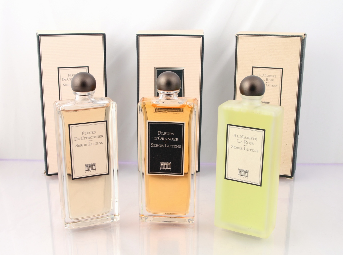 Lot comprenant trois flacons luxe contenant chacun 50ml d'eau de parfum , présentés dans leur étui carton titré, parfums : "Sa Majesté la Rose", "Fleurs d'Oranger" et "Fleurs de Citronniers".