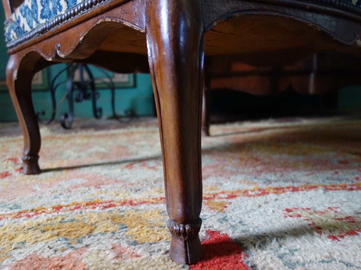 PAIRE de FAUTEUILS à haut dossier en noyer mouluré. Ceintures chantournées reposant sur des pieds cambrés à sabots de biche.
