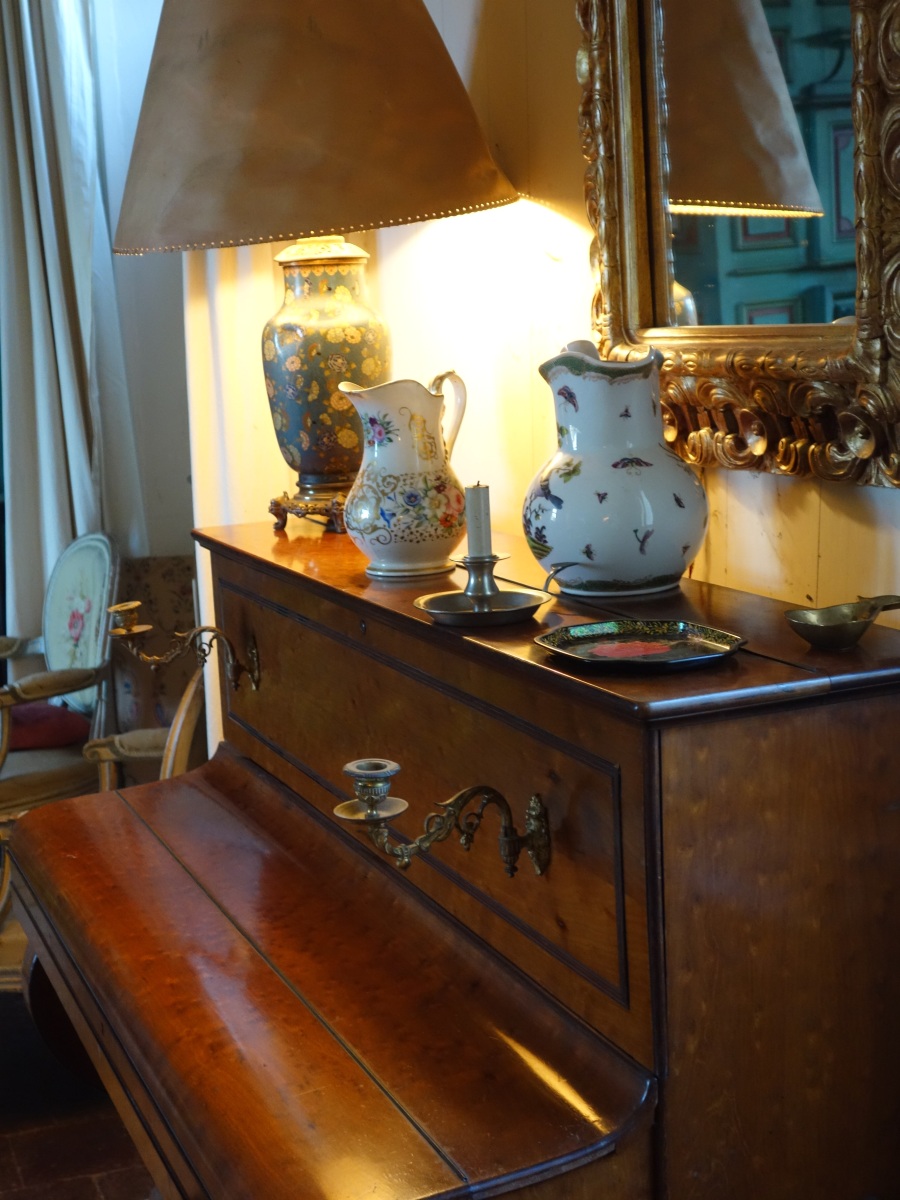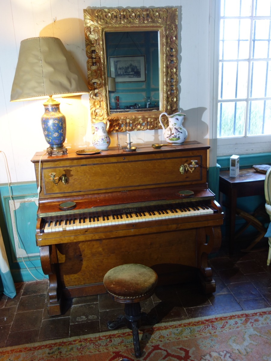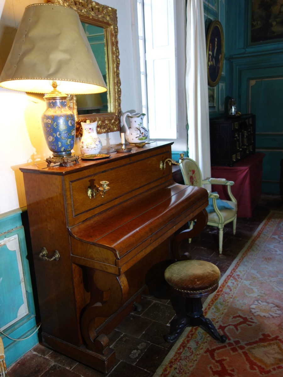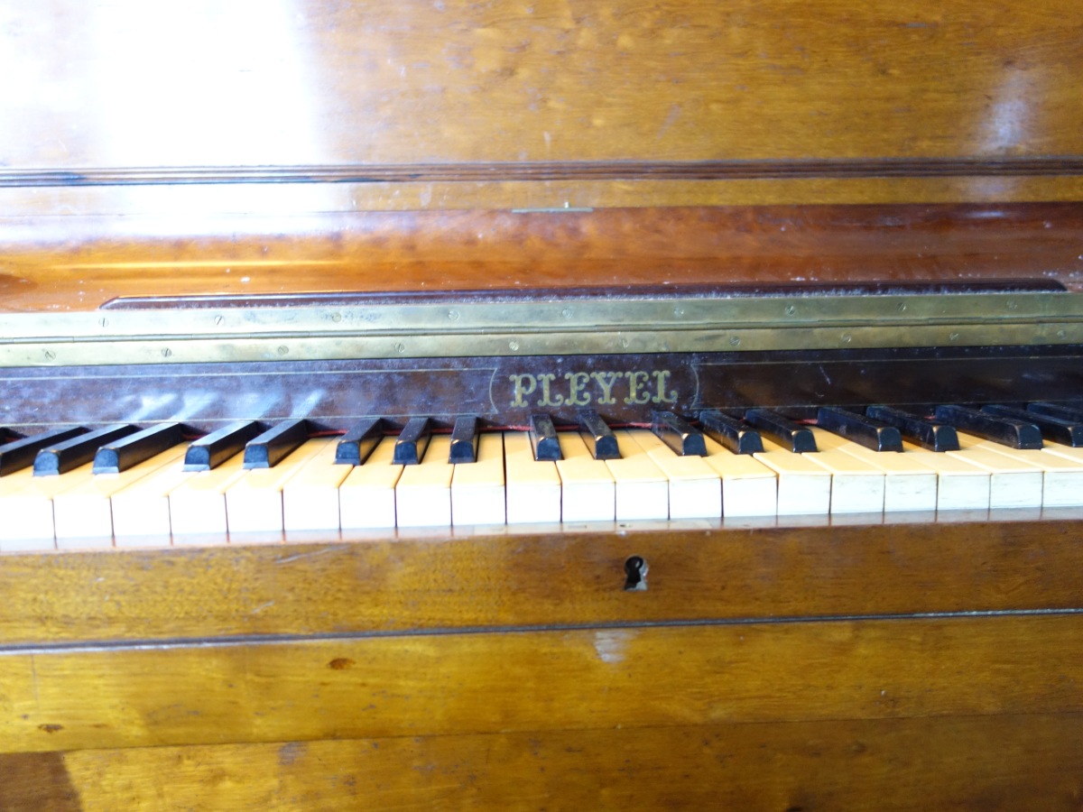 PIANO droit PLEYEL en acajou et placage d'acajou souligné de moulures en palissandre (petites décolorations).