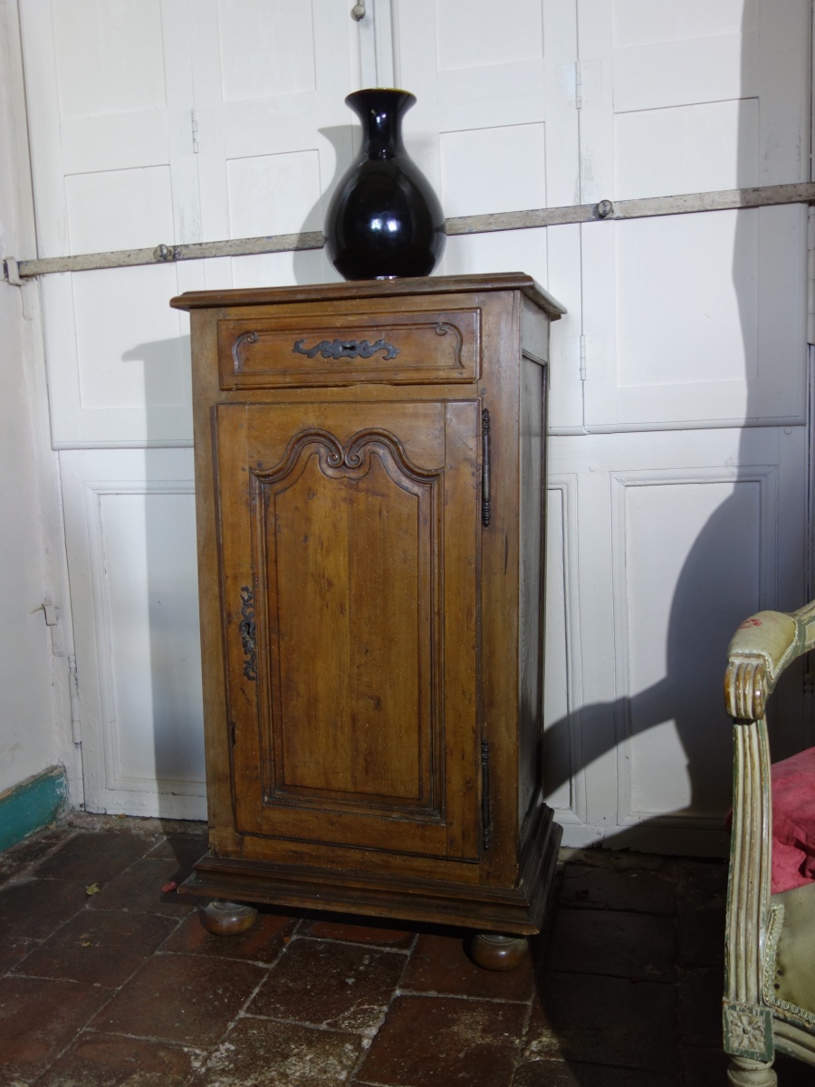 CONFITURIER en bois naturel ouvrant par une porte et un tiroir.