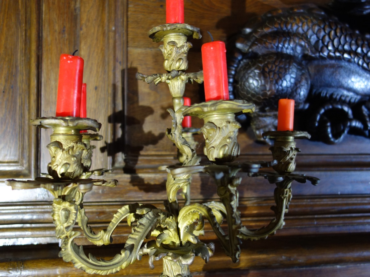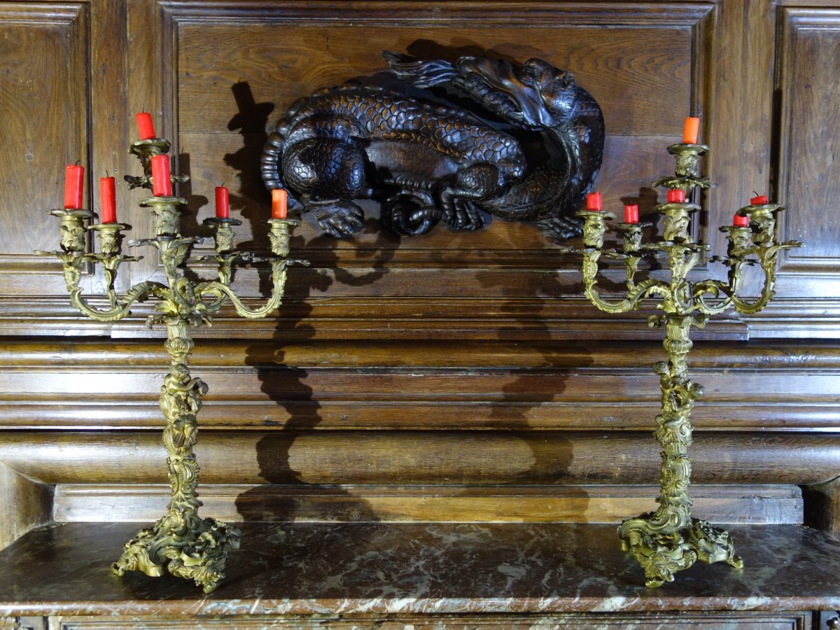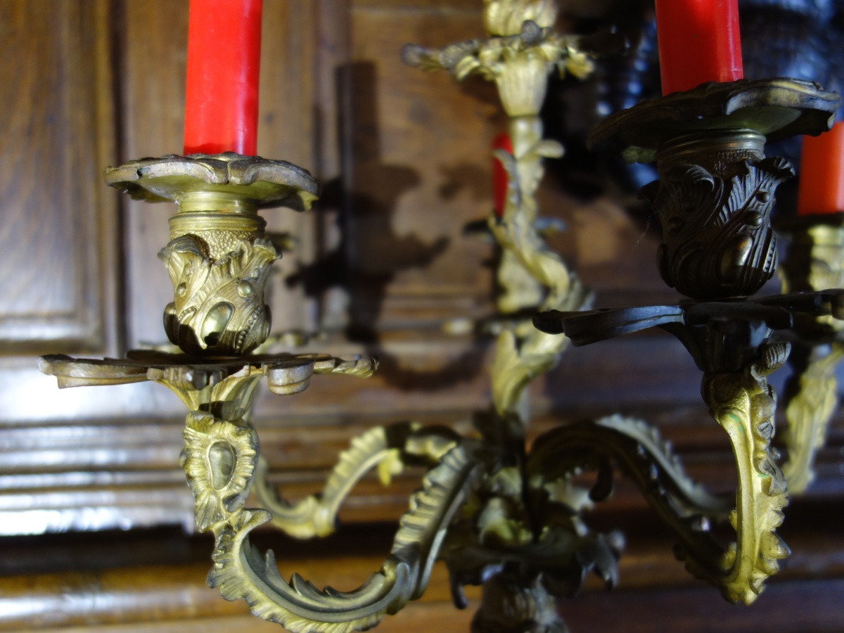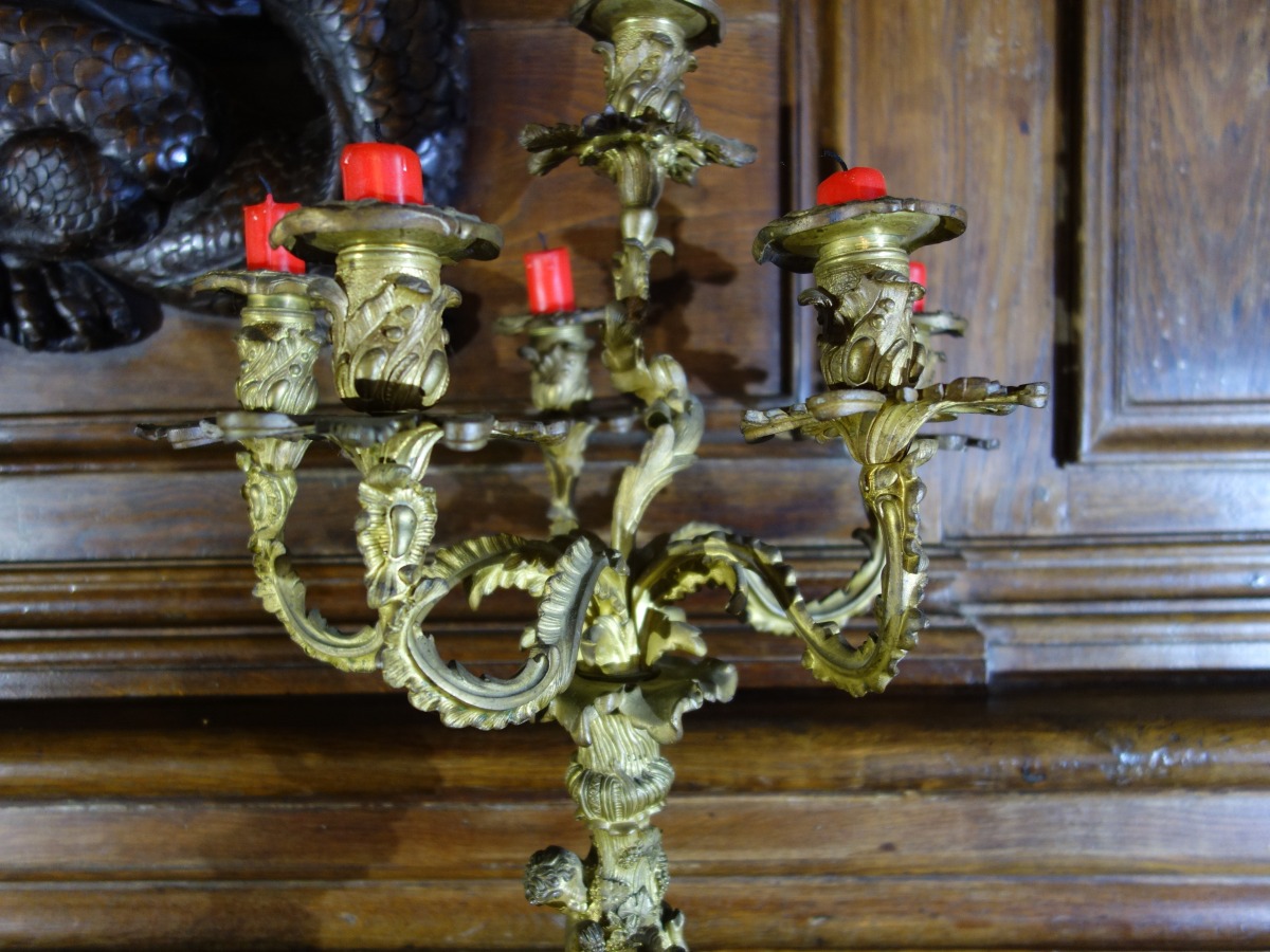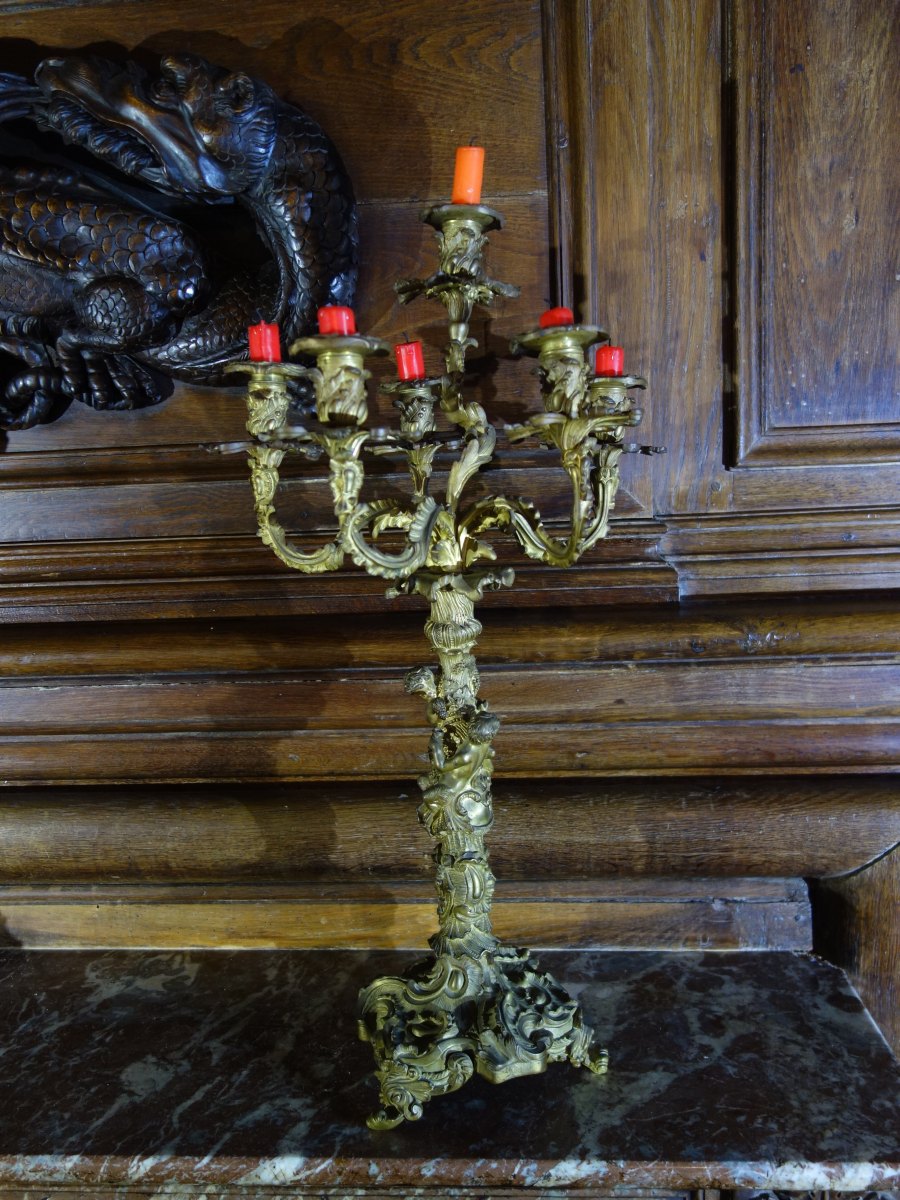 Grande paire de CANDÉLABRES en bronze à six bras de...
