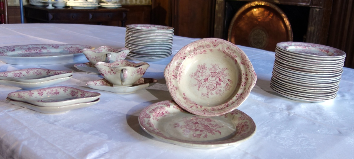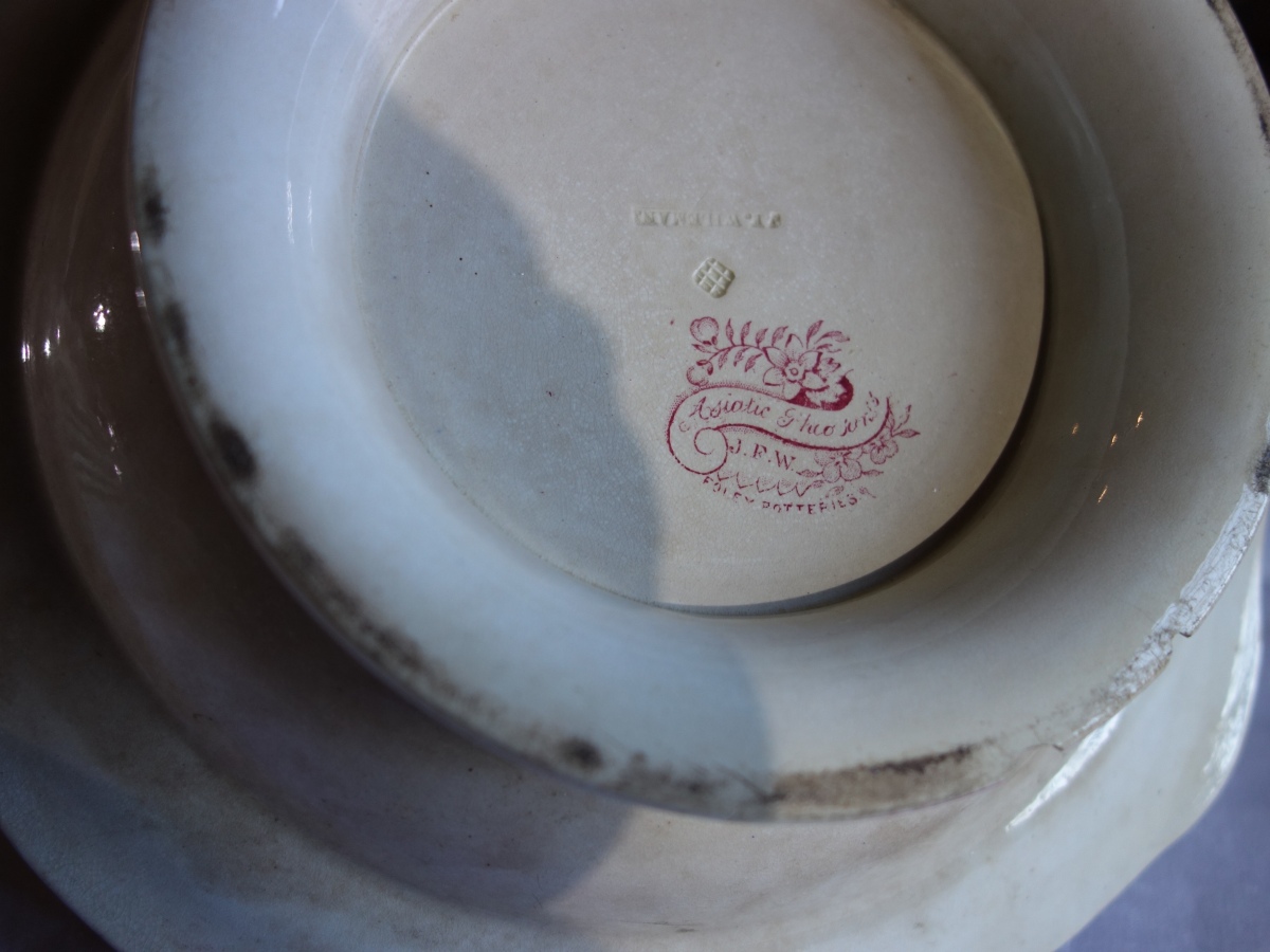 J.F. WILHMAN. SERVICE « asiatic » en faïence anglaise émaillée rose et...