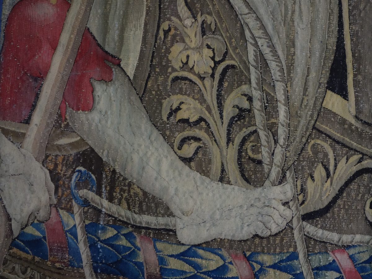Fragment de TAPISSERIE, laine et soie.