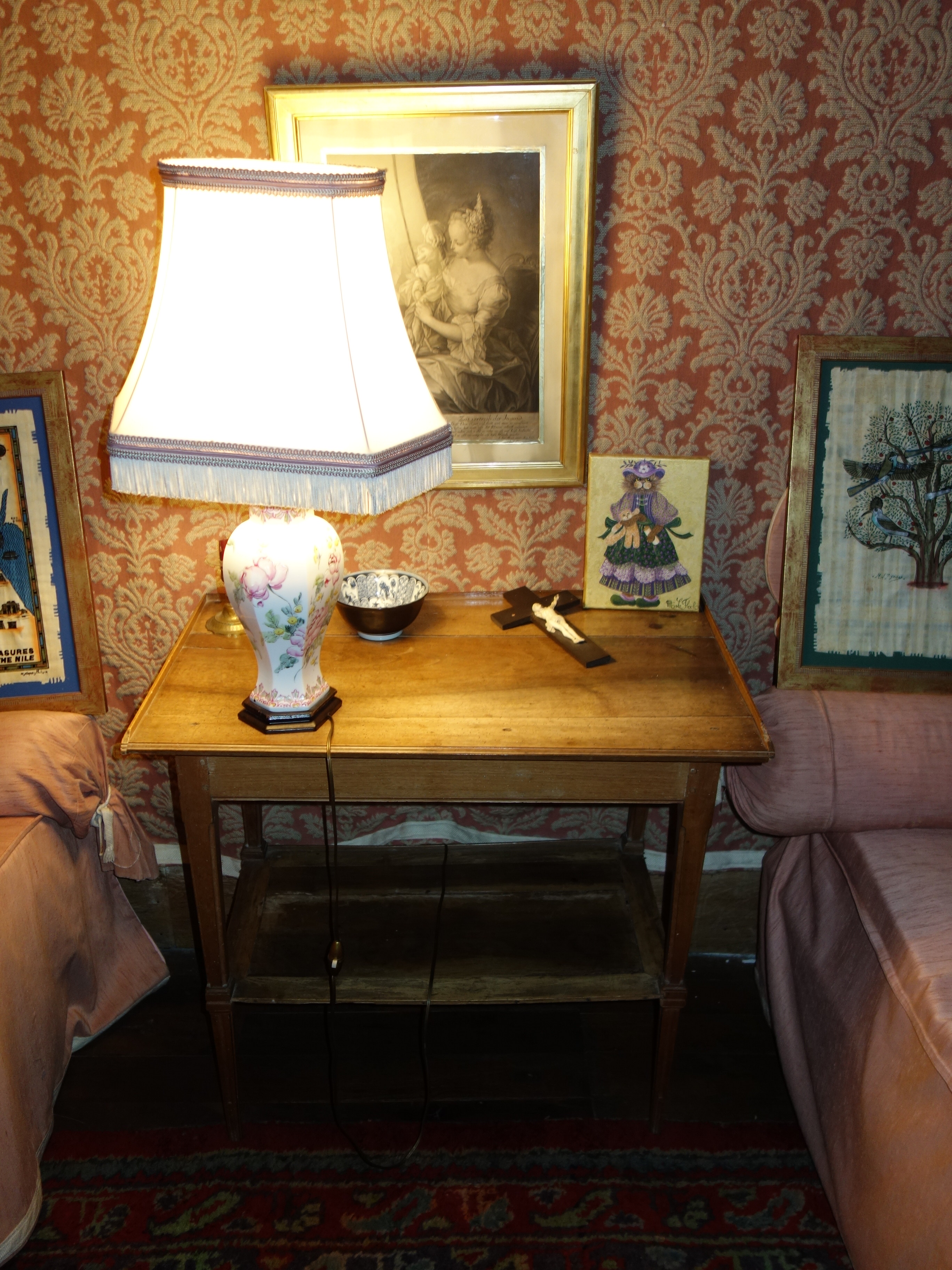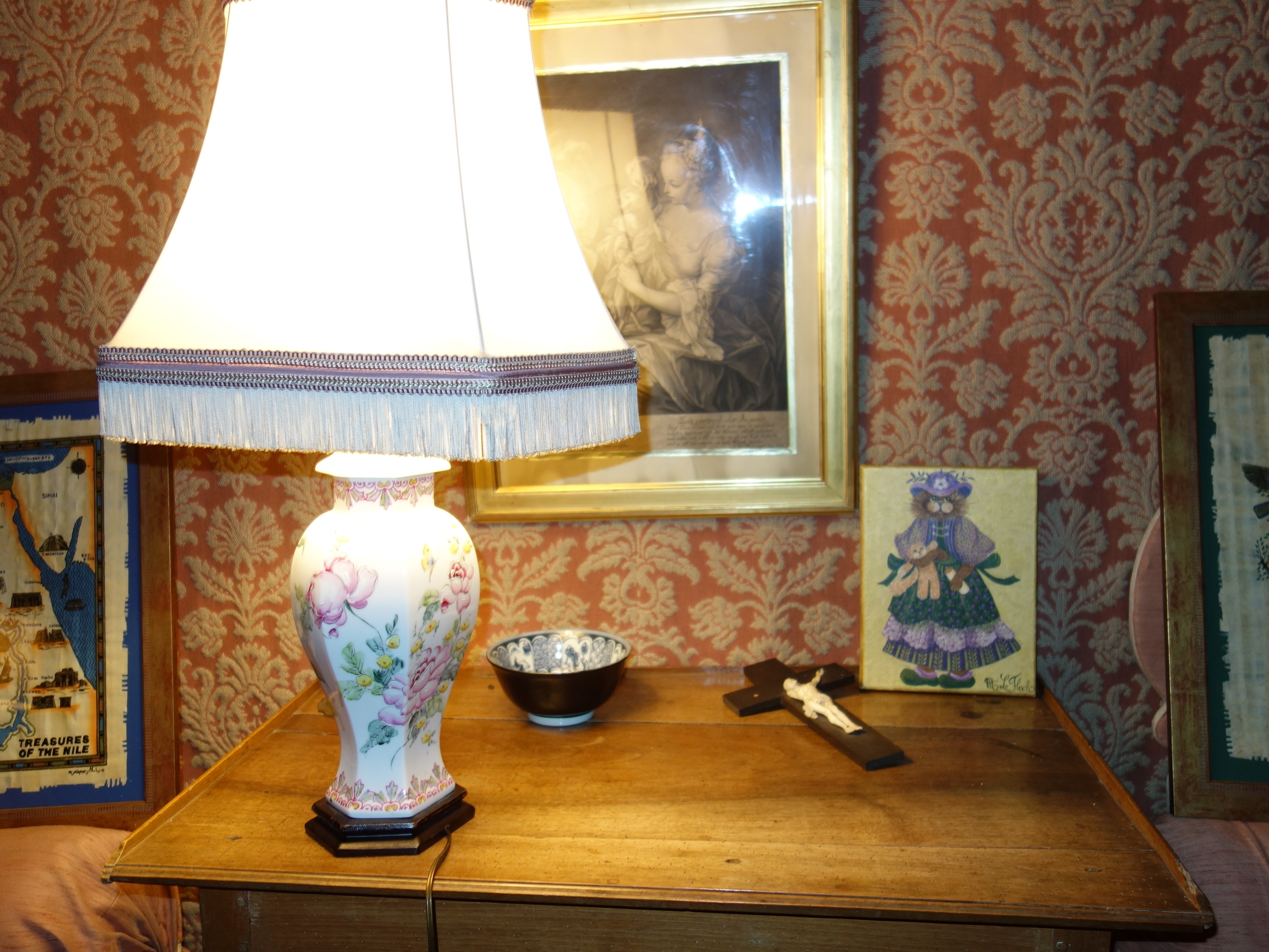 JOINT : une LAMPE, un BOL, un BOUGEOIR, un CHRIST et une GRAVURE.
