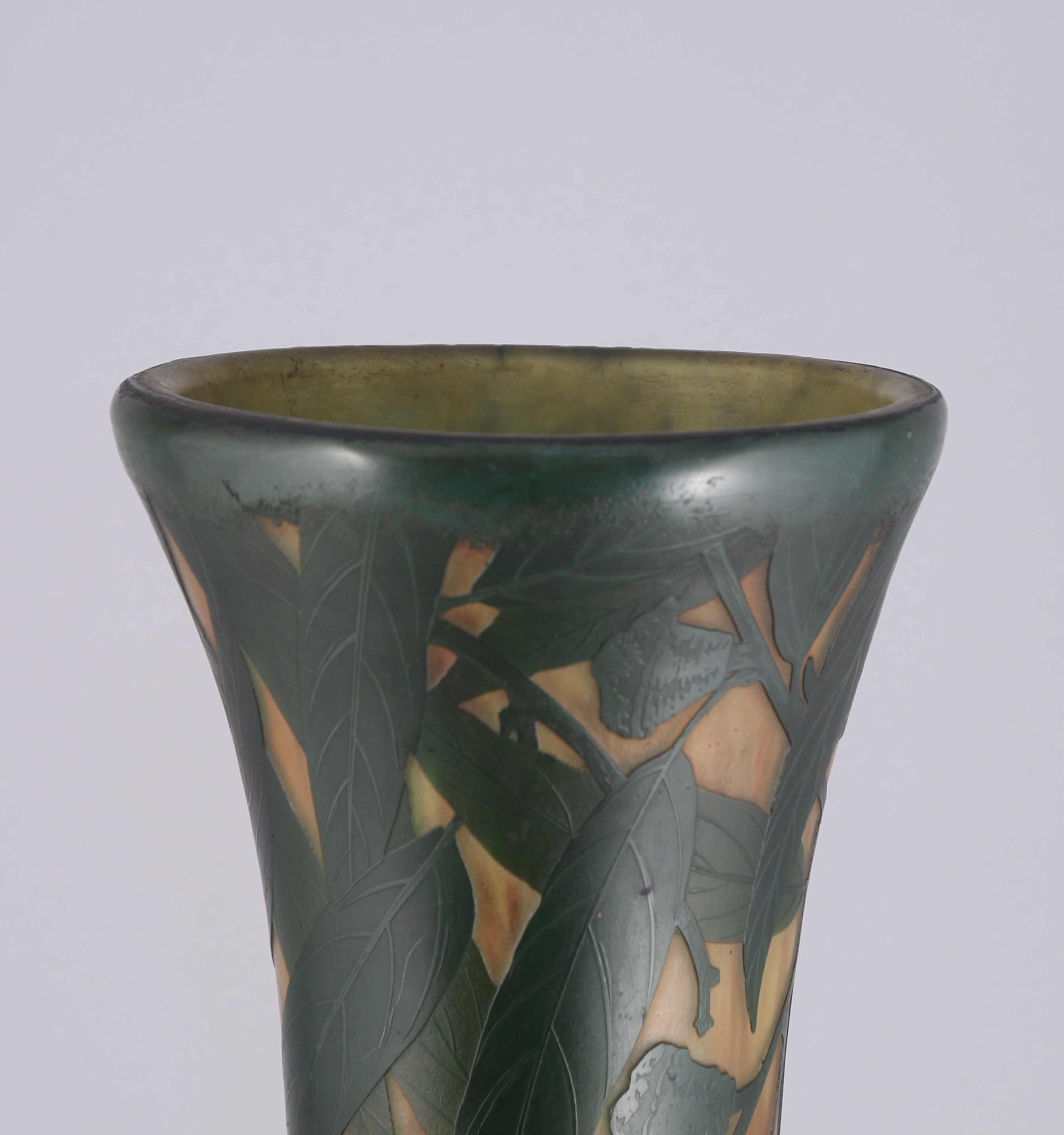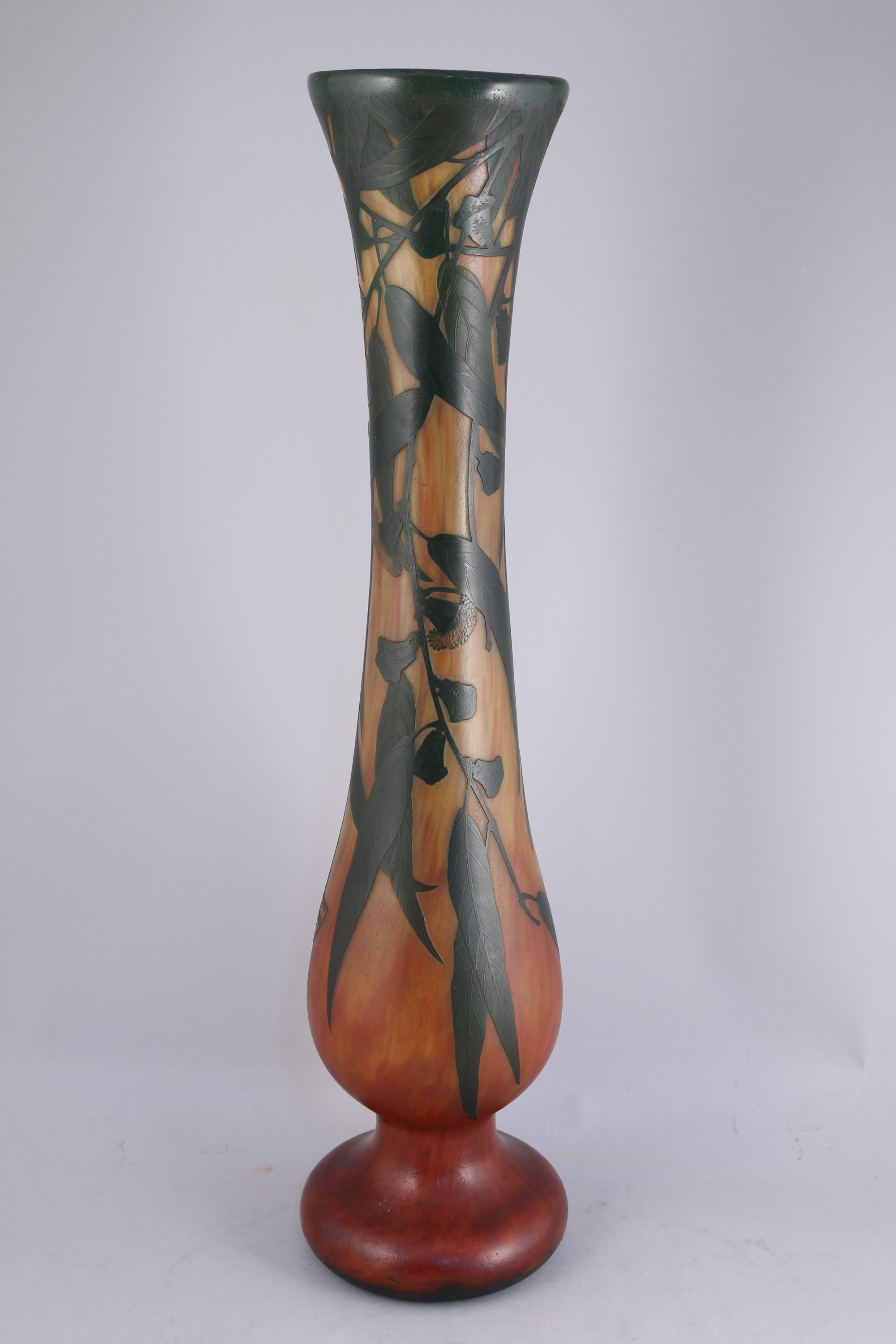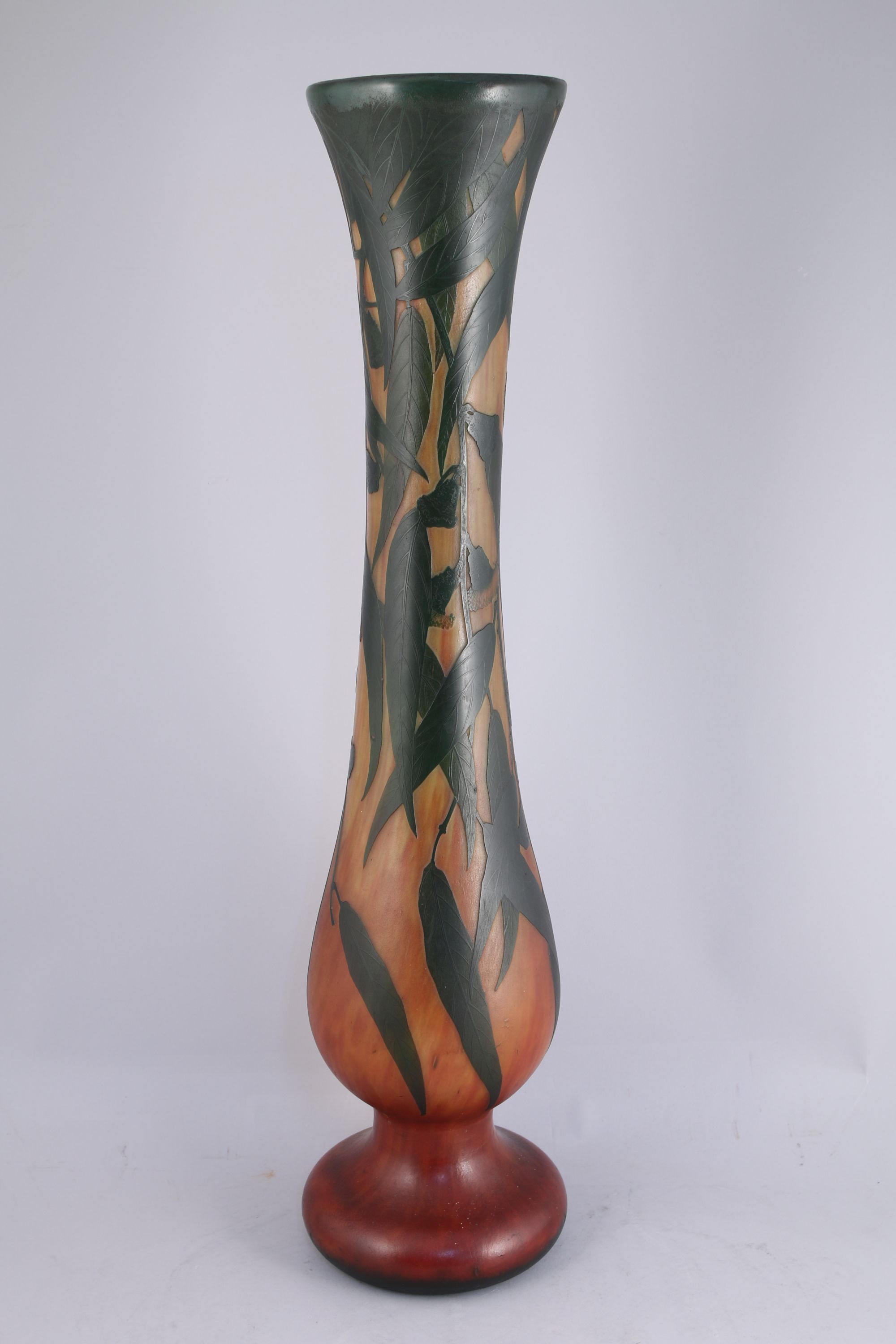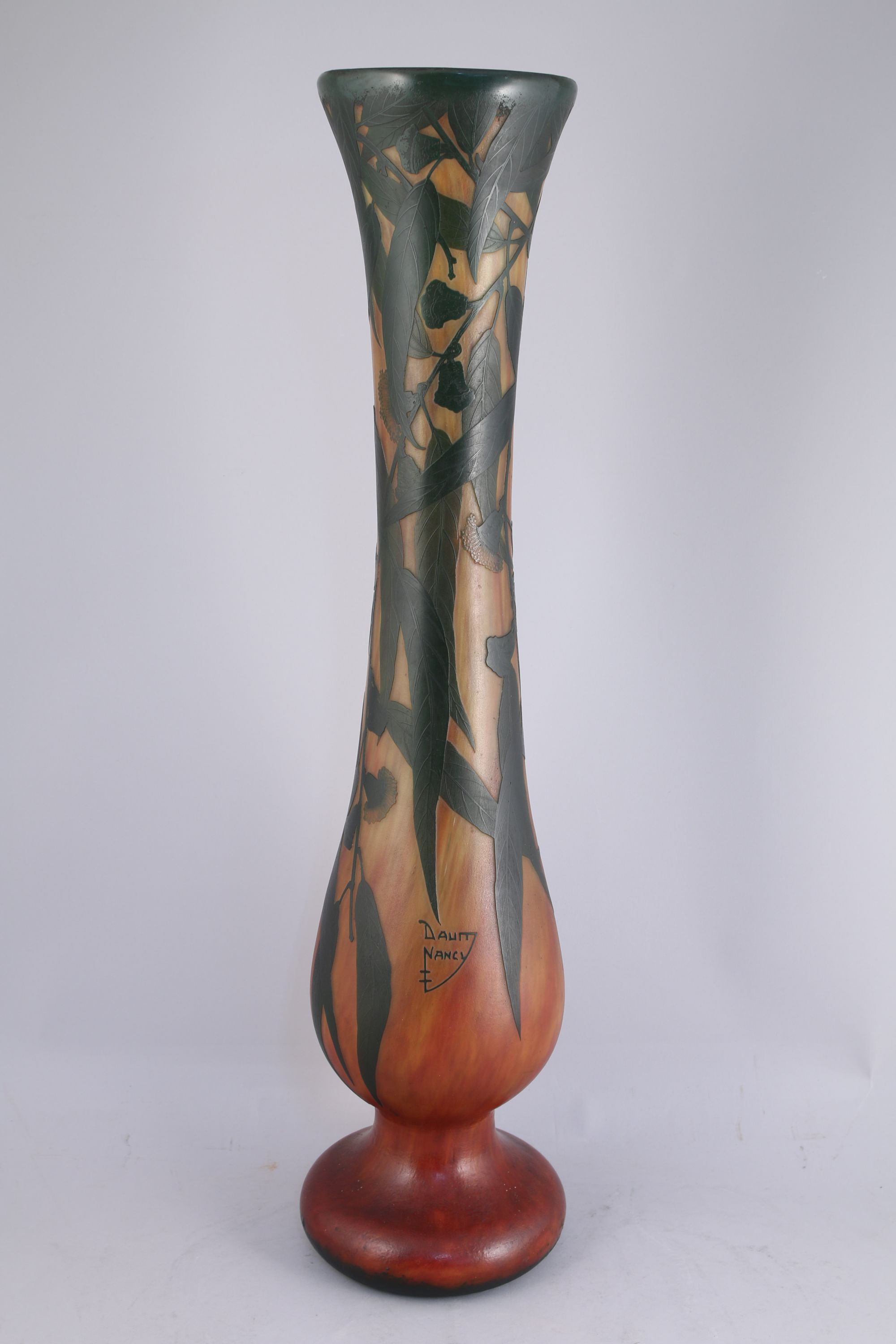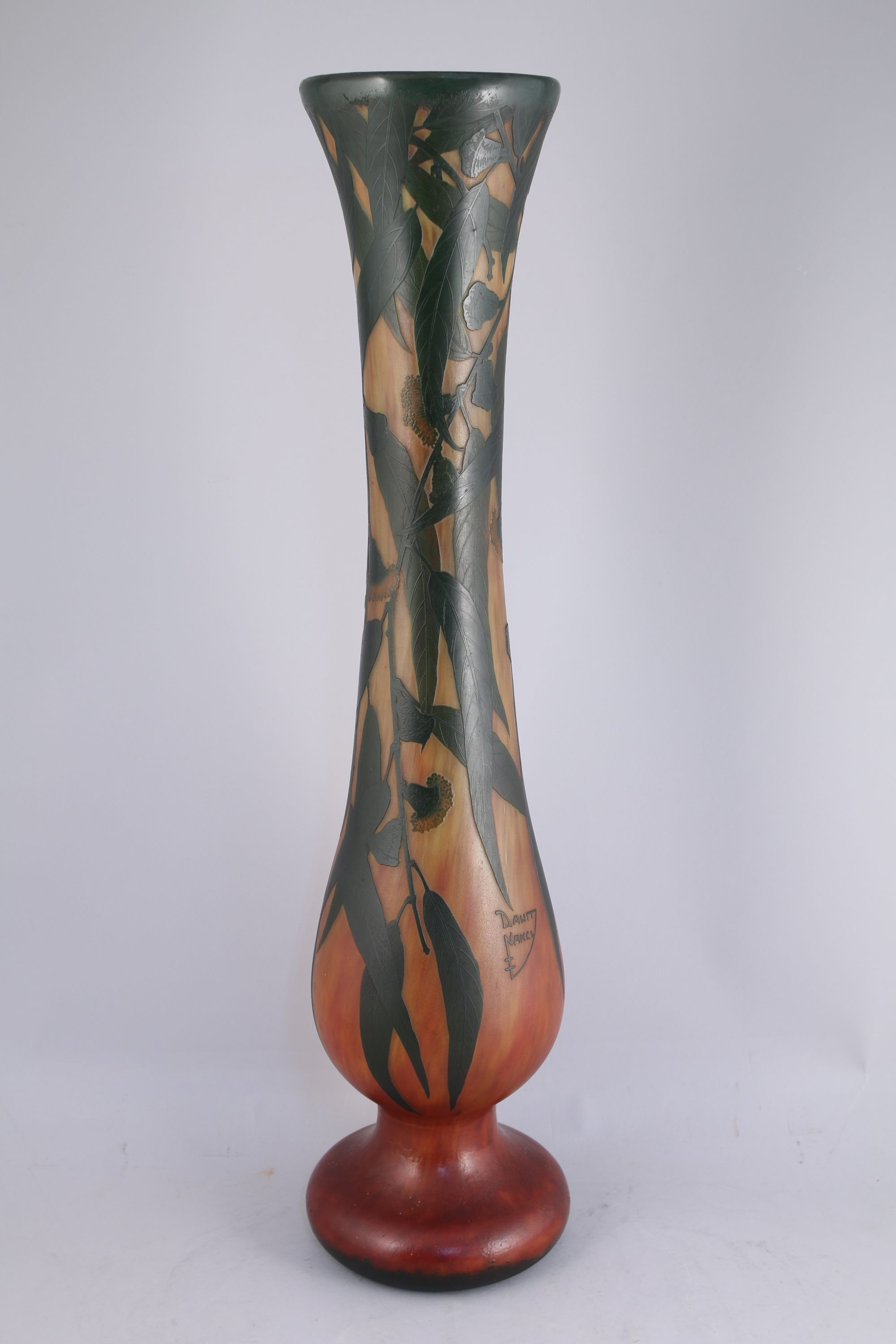 DAUM, c. 1913. Spectaculaire VASE aux EUCALYPTUS