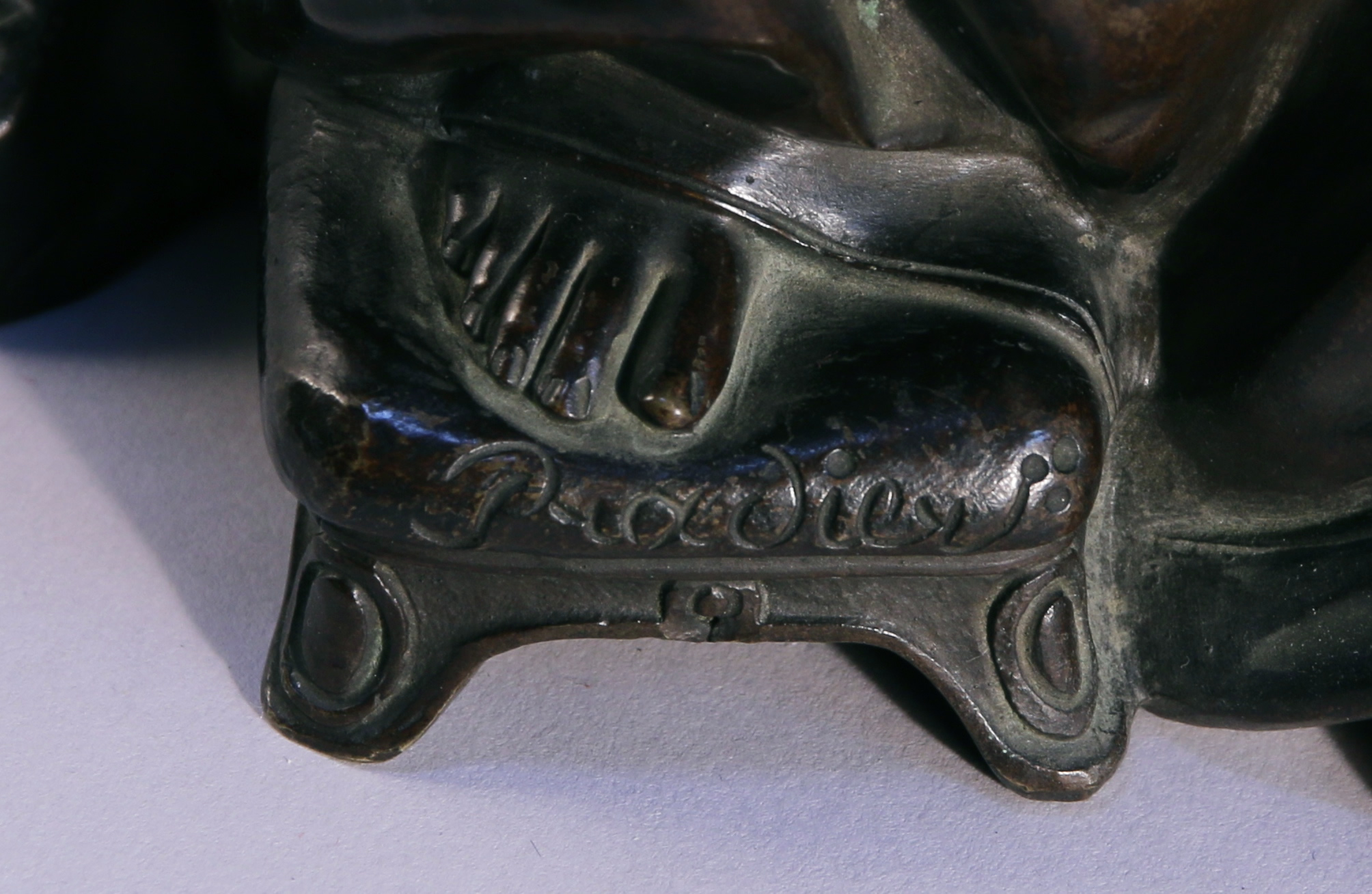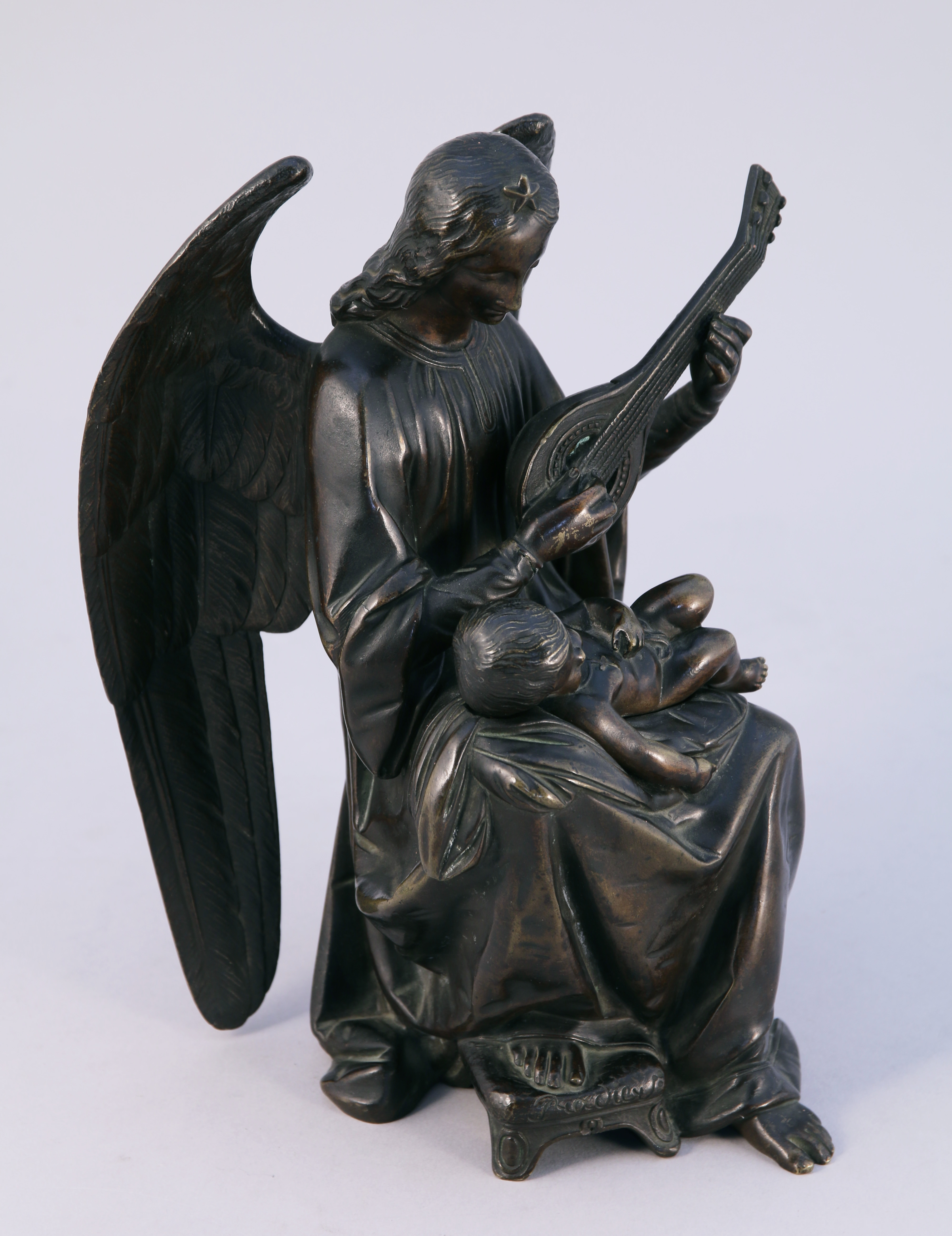 Bronze. Signé "Pradier:" sur le repose-pied de l'ange musicien.