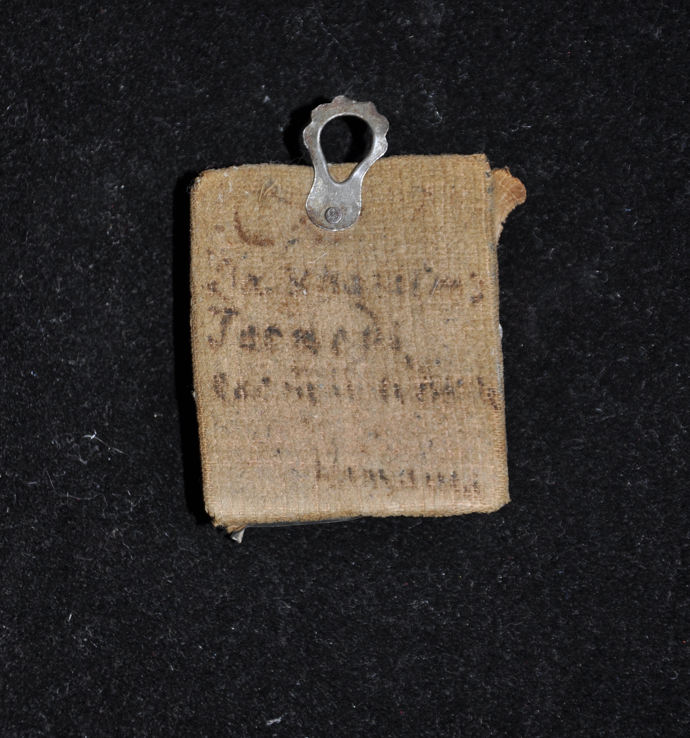 - LE CHRIST PANTOCRATOR. Rizza en argent (84) et poinçon d'un maître-orfèvre. Au dos inscription manuscrite en cyrillique. 4,7 x 4 cm. (accidents et manques)