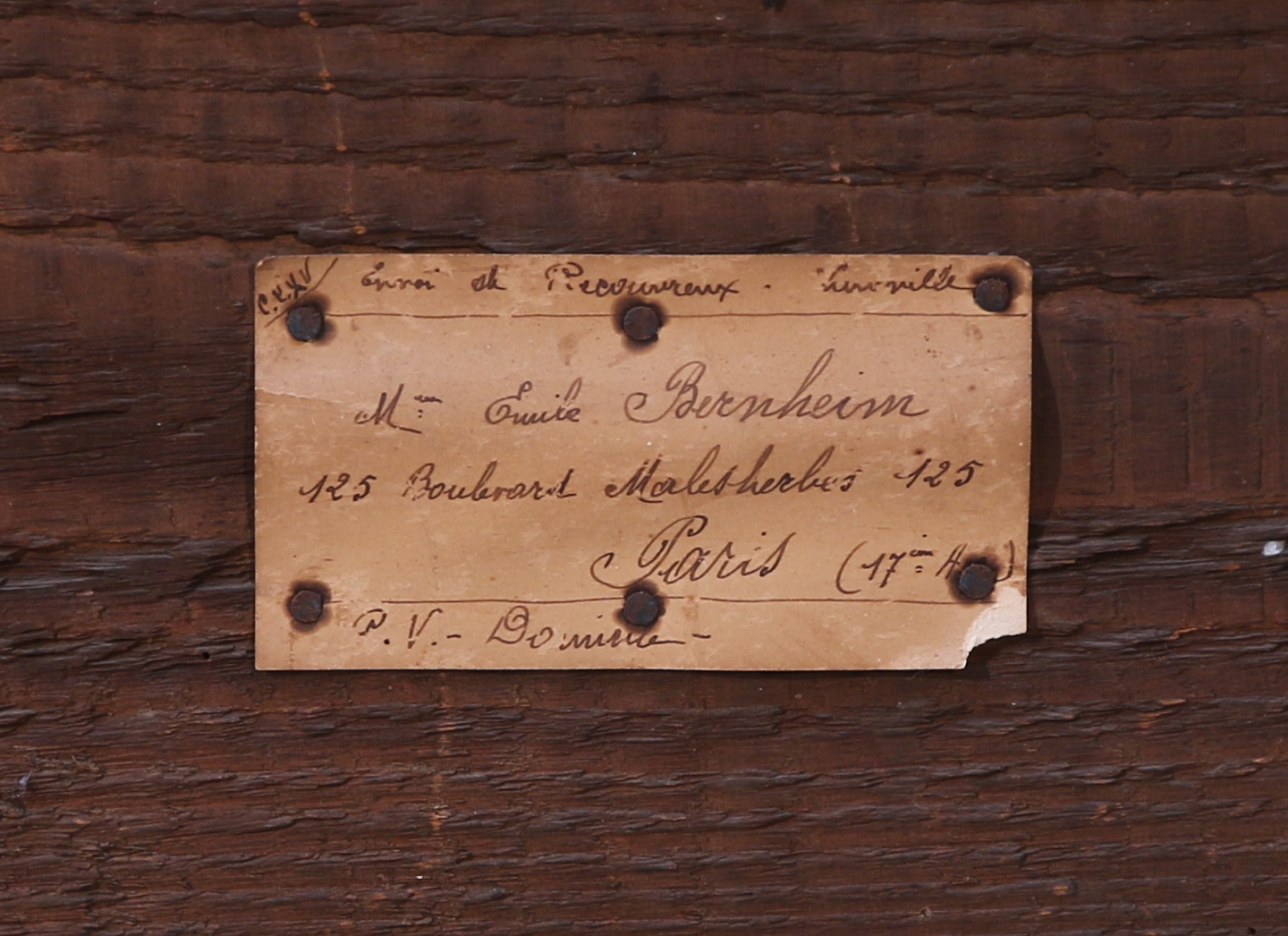 - selon une étiquette manuscrite au dos : Émile Bernheim (1886 1985), son appartement du 125, boulevard Malesherbes à Paris.