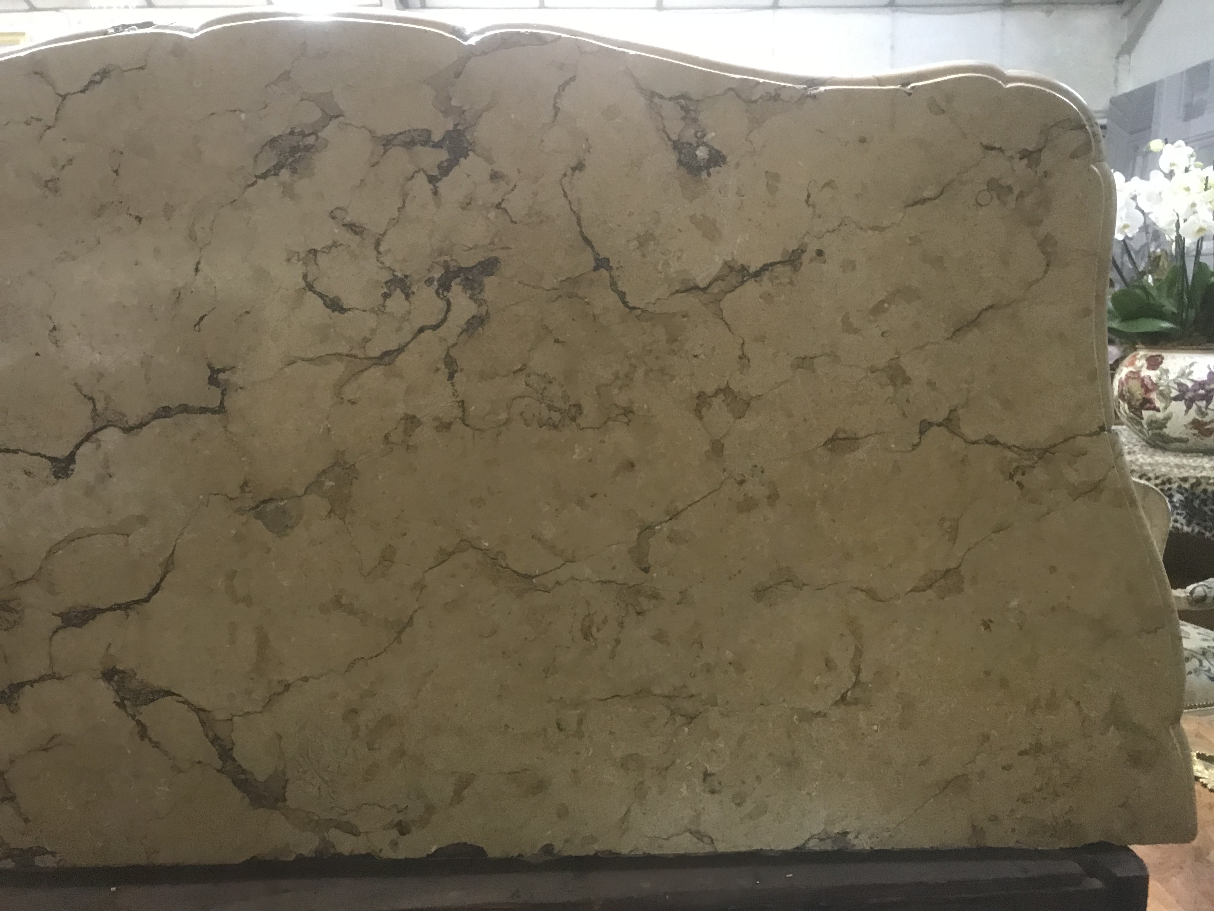 Jean-François prend l'habitude de coller à l'intérieur de ses meubles, des étiquettes qui nous renseignent sur sa production. Au-delà des meubles de grande qualité, il fait également le commerce d'objets inattendus. Notre étiquette, liste une pléthore d'objets civils et domestiques, tout en nous renseignant sur des matériaux rares qui constituaient le stock de l'entreprise. Nos "quatre colonnes de beau marbre" apparaissent par exemple en 1774 sur les étiquettes, pour disparaître en 1780.