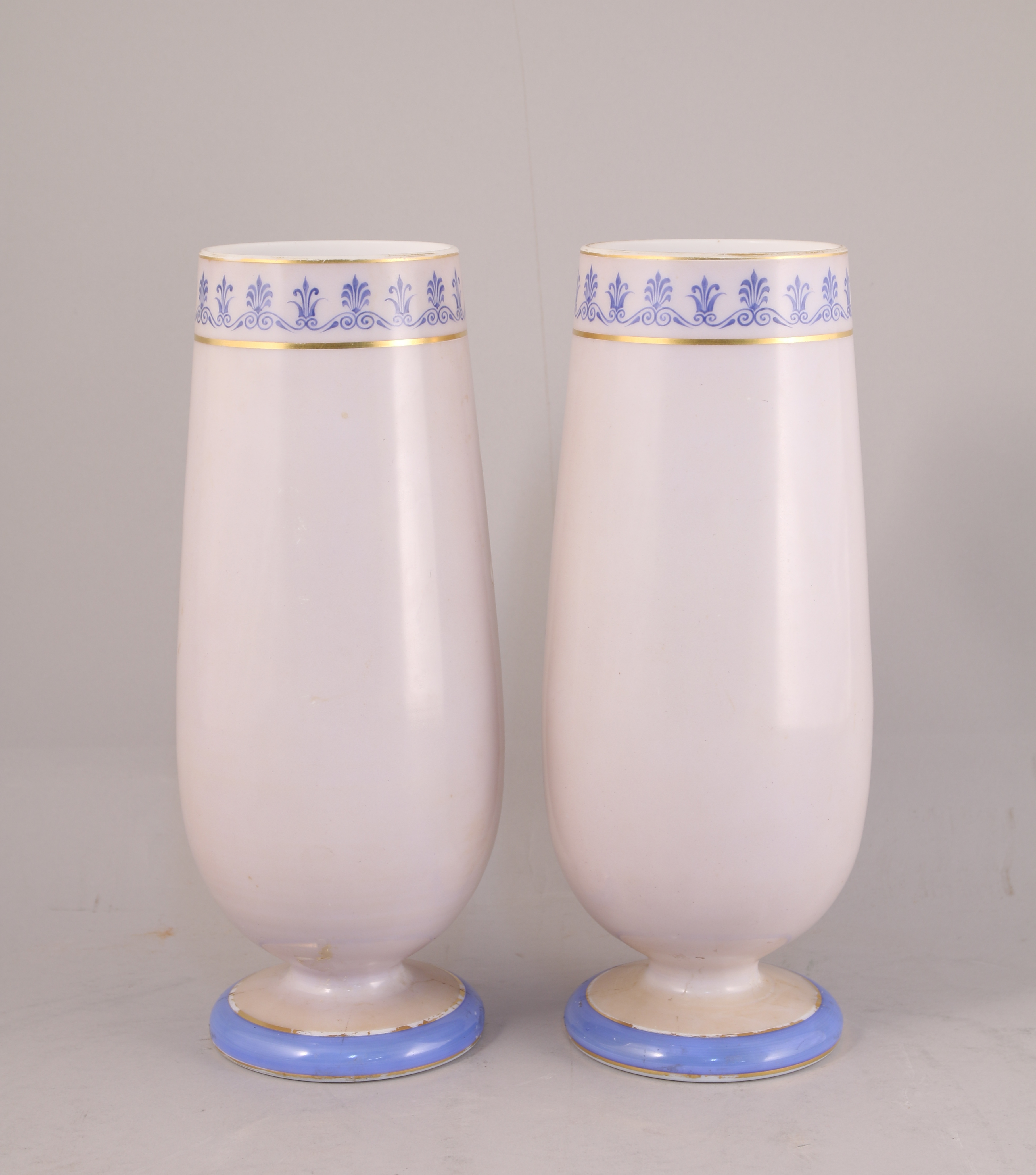 PAIRE de VASES sur piédouche en opaline blanche et bleue rehaussé d'or,
