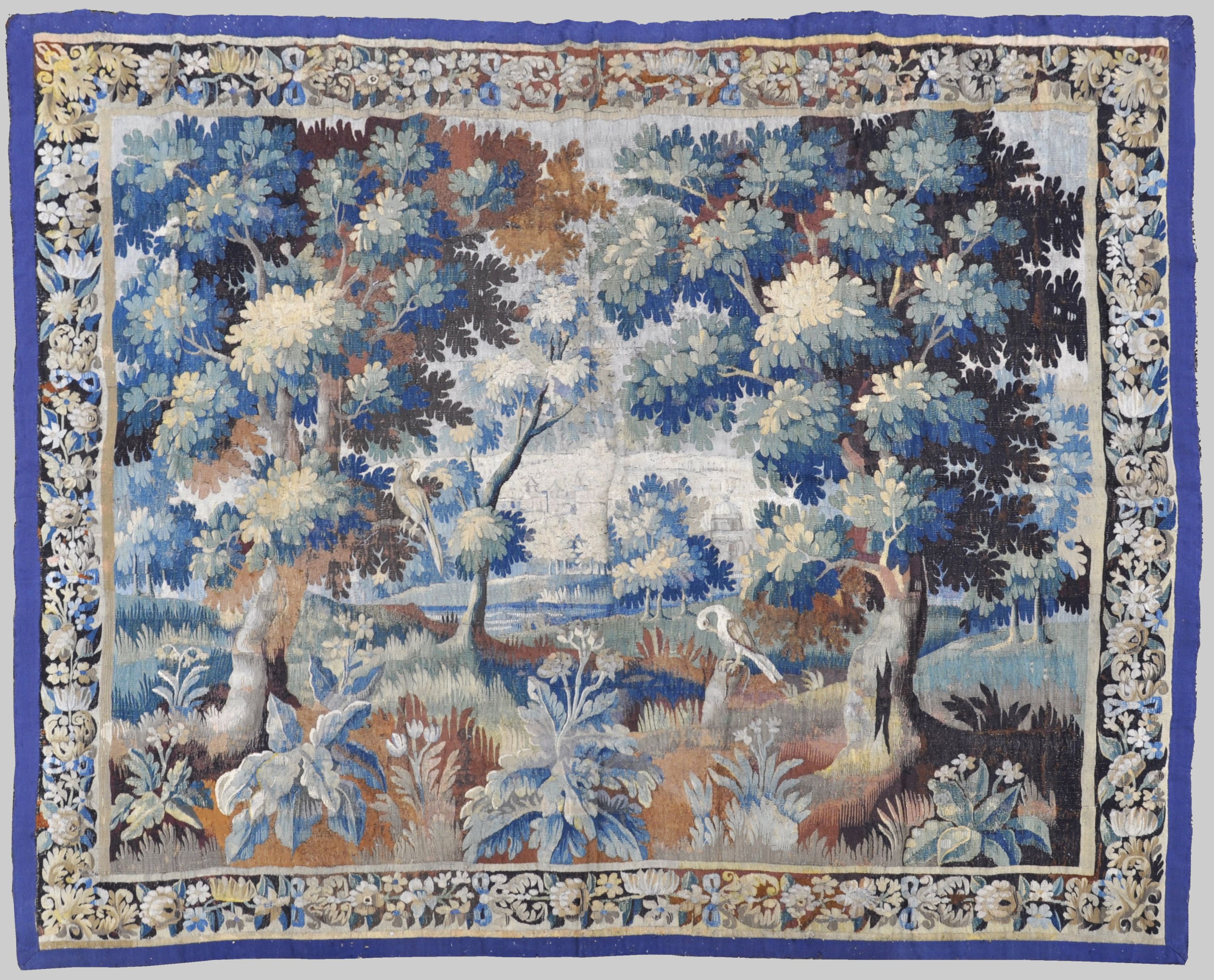AUBUSSON - XVIIIe. Verdure au château, rivière et oiseaux,