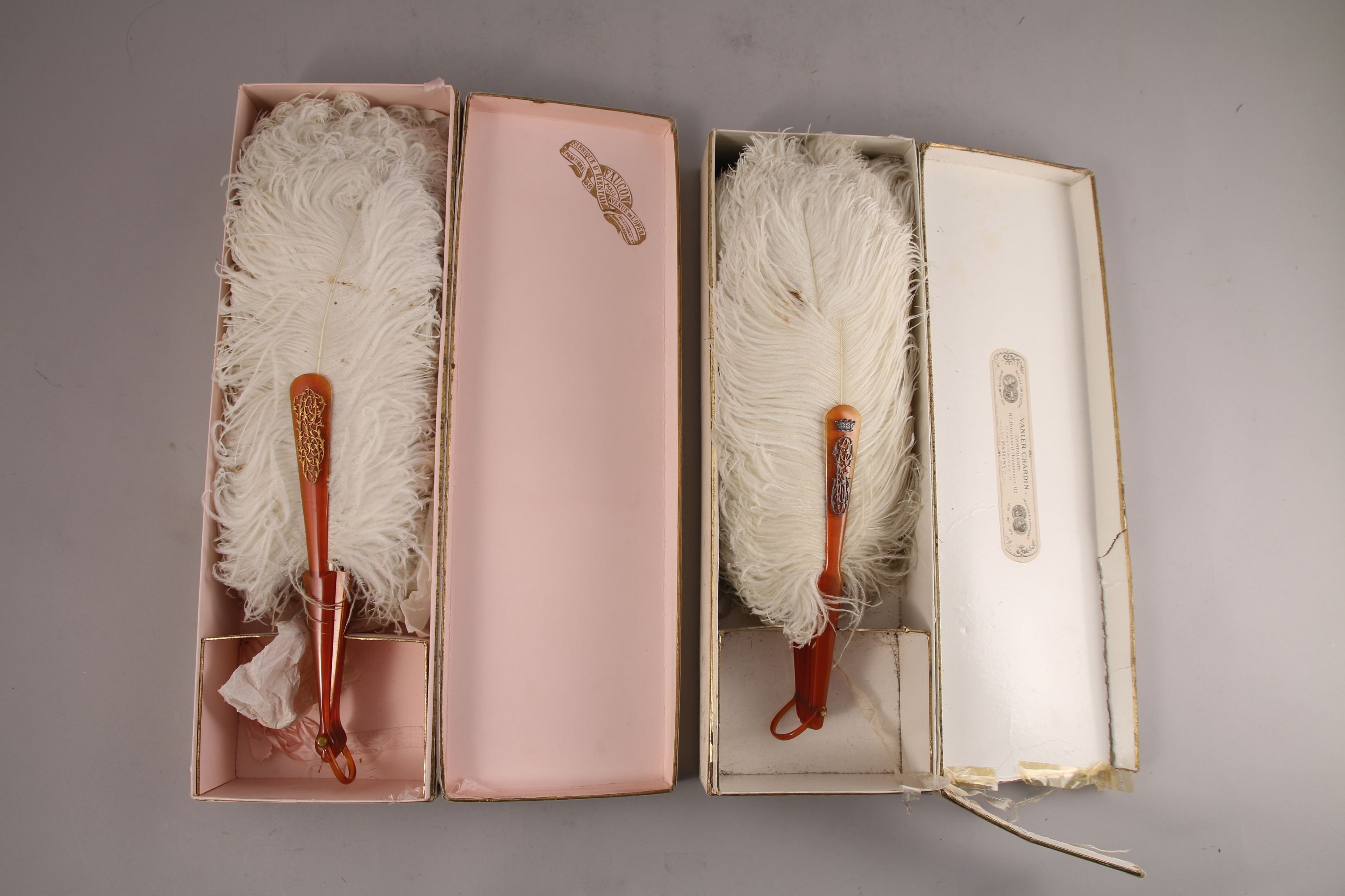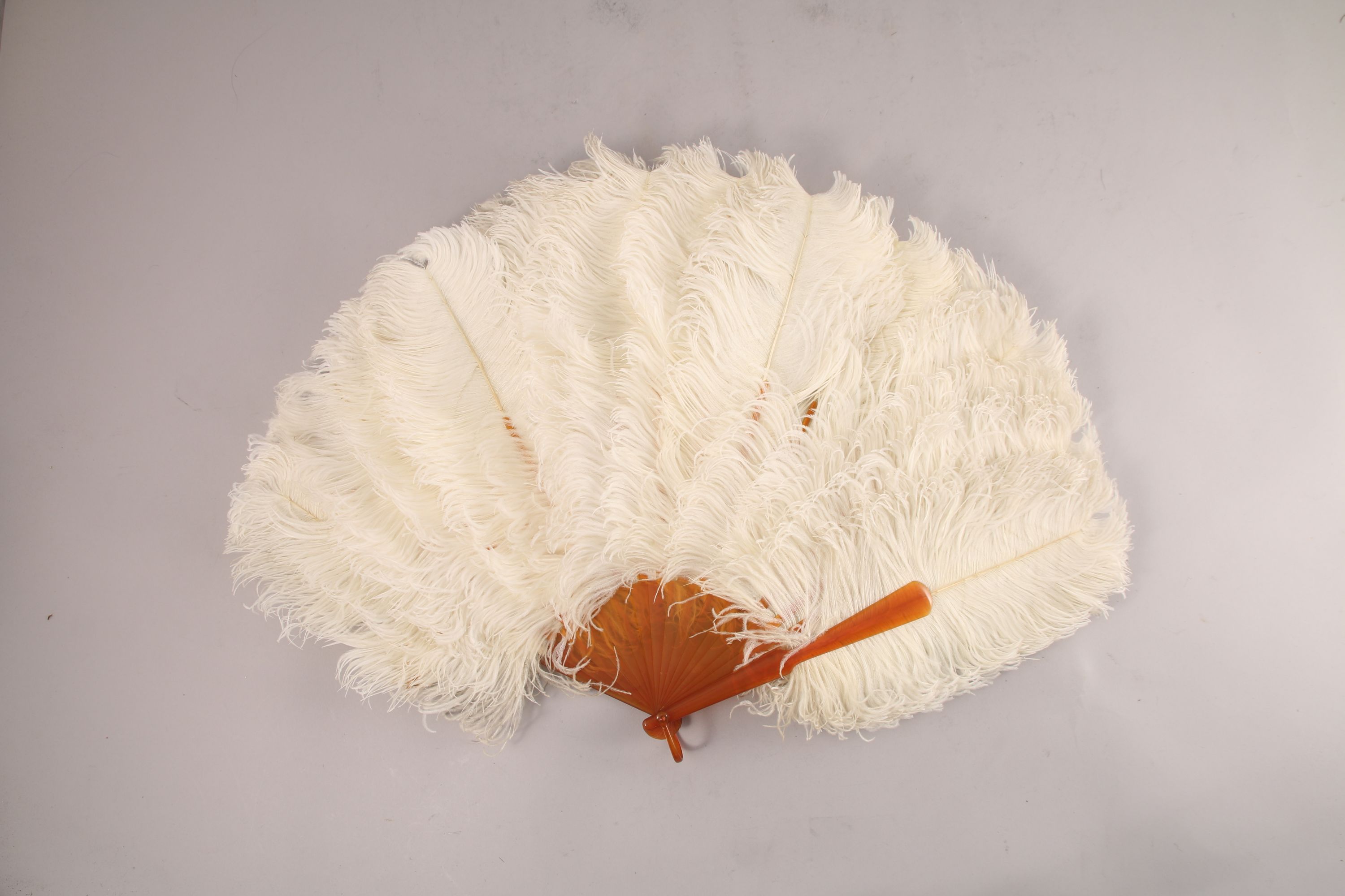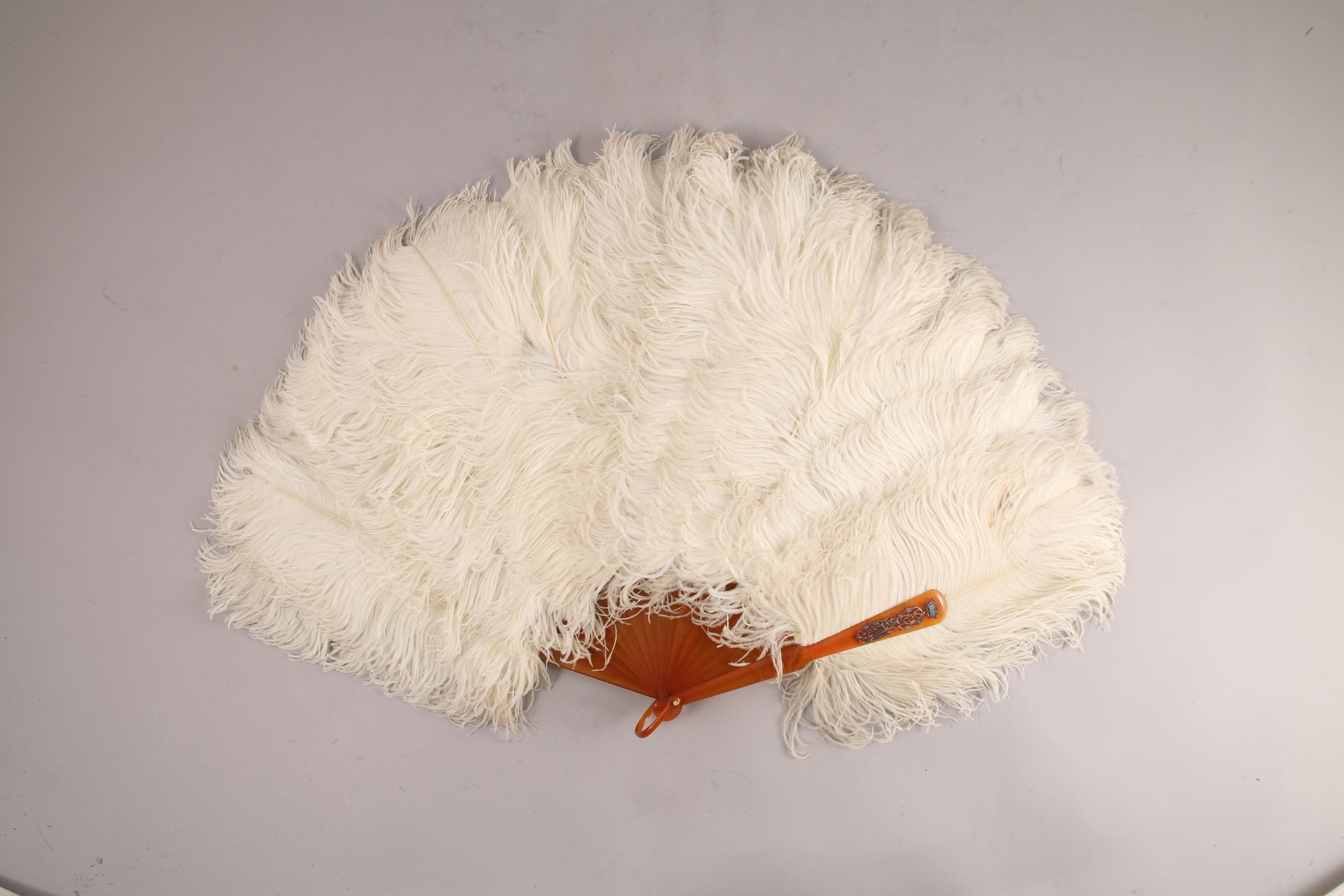 TROIS ÉVENTAILS pliés en plumes d'autruche.