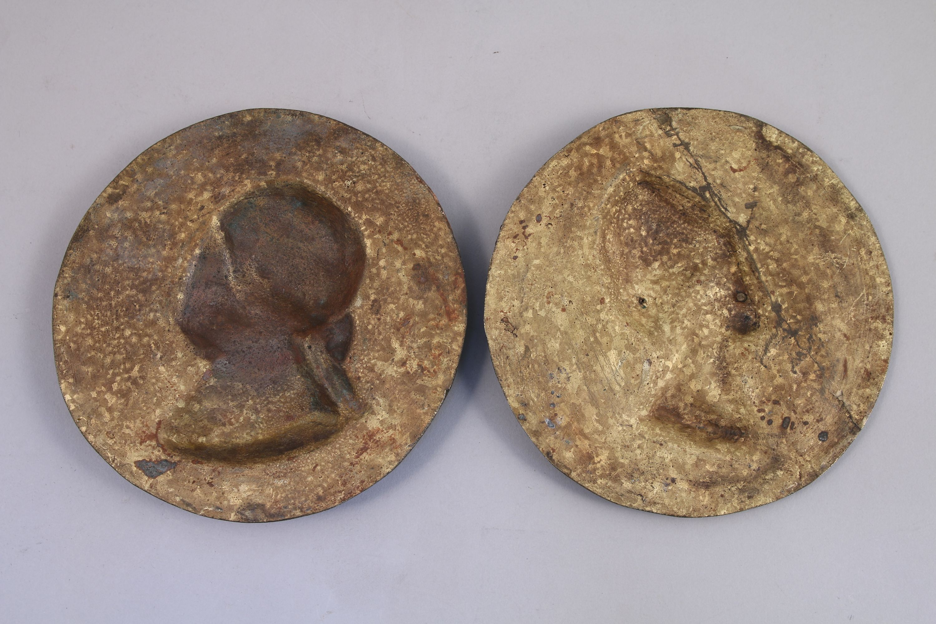 Paire de bustes en médaillon, d'un couple de profil dans le goût du XVIIIe.