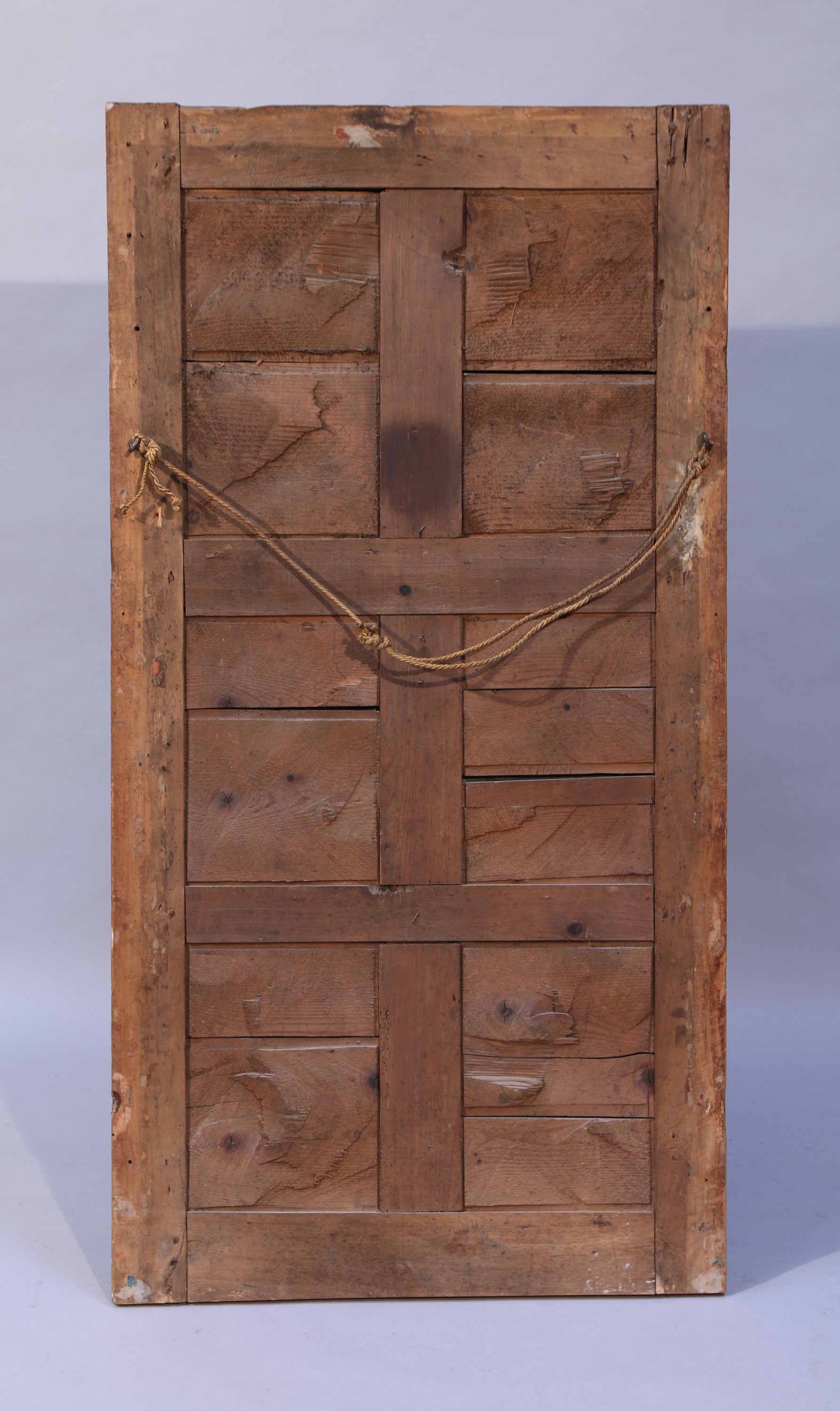 GLACE au mercure en deux parties, en bois anciennement doré à décor de rubans.