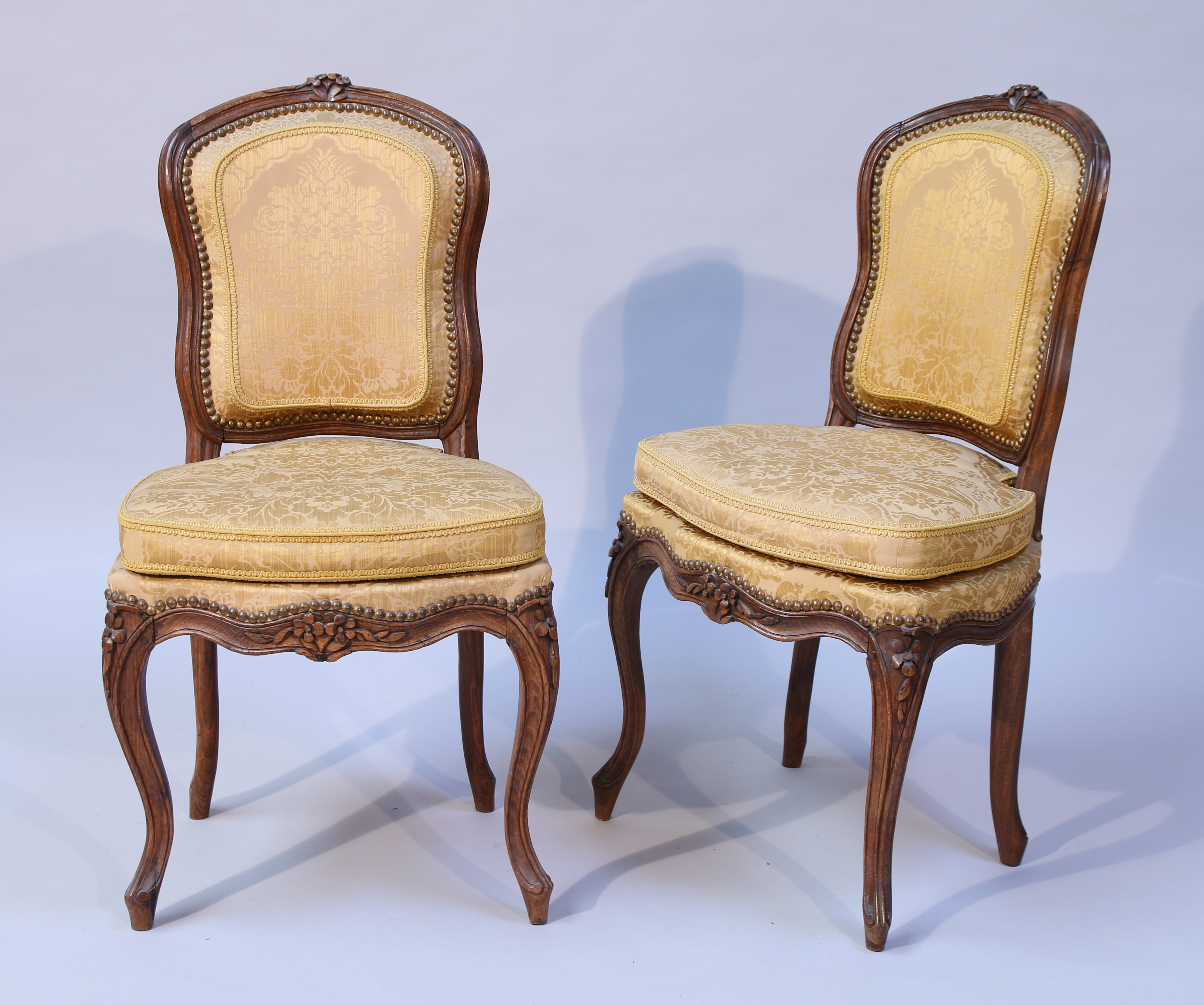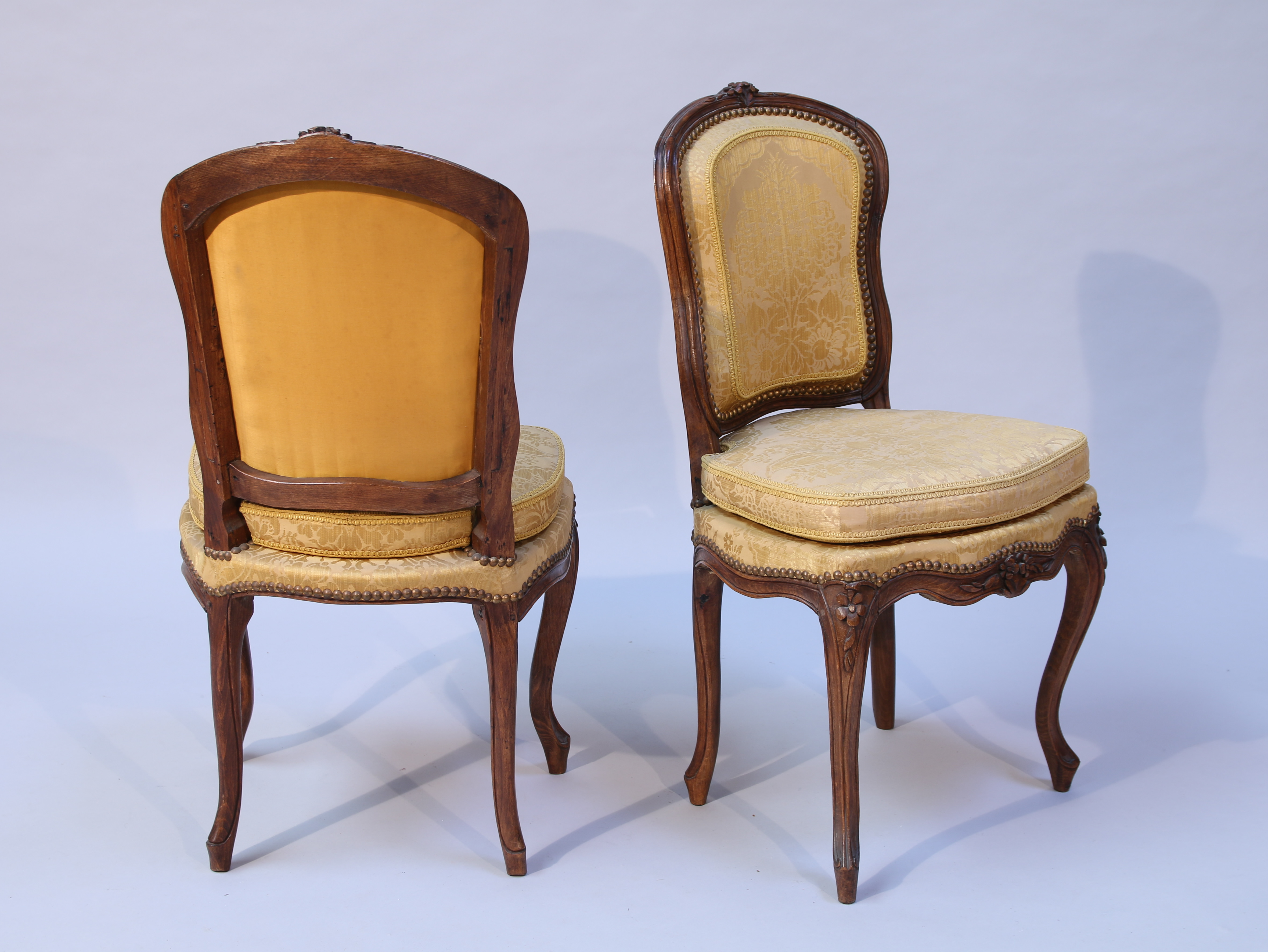 autrefois cannées, modifiées et garnies de coussins de soie jaune.