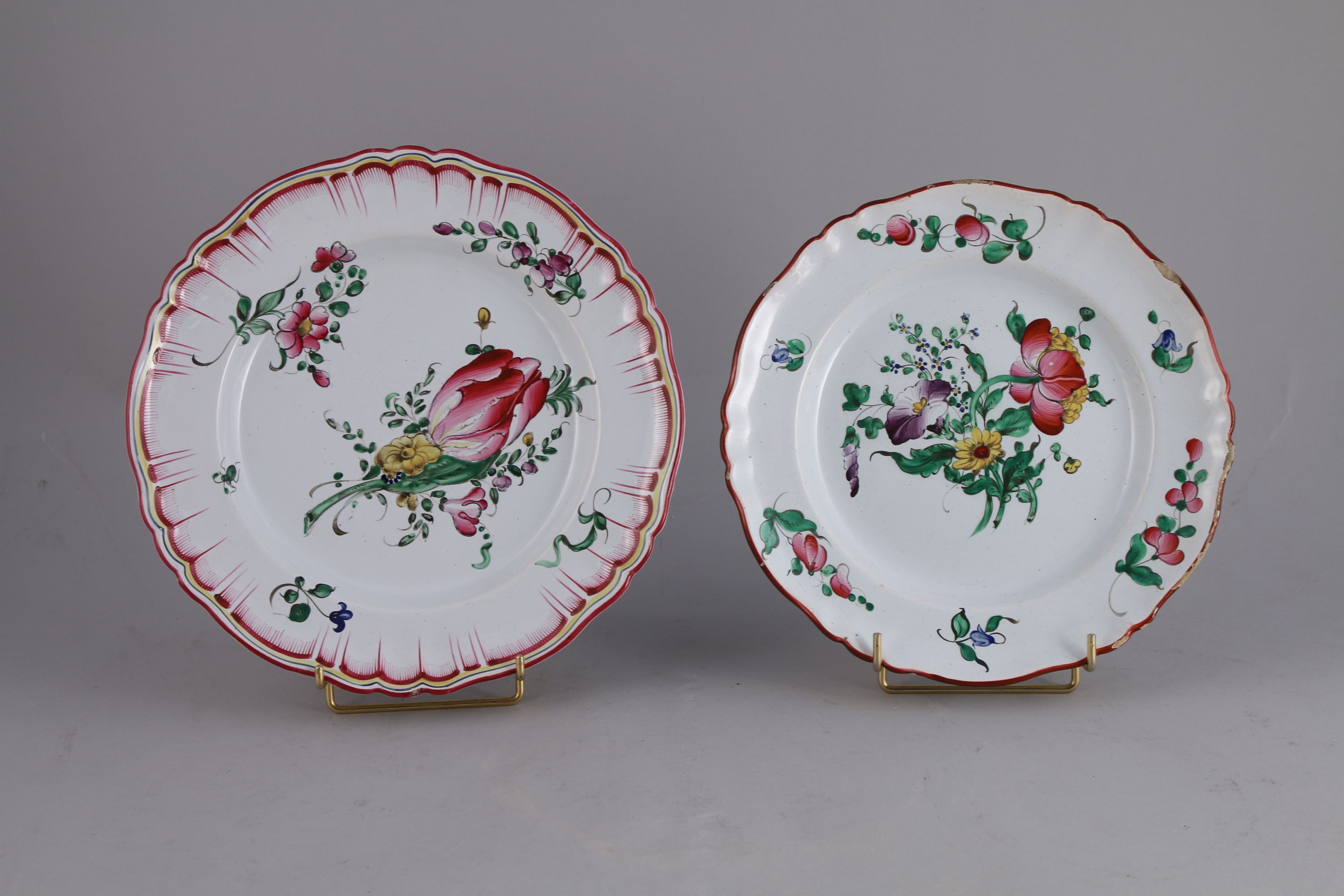 en faïence, au décor de fleurs chatironnées dont une tulipe mi-close pour la première.