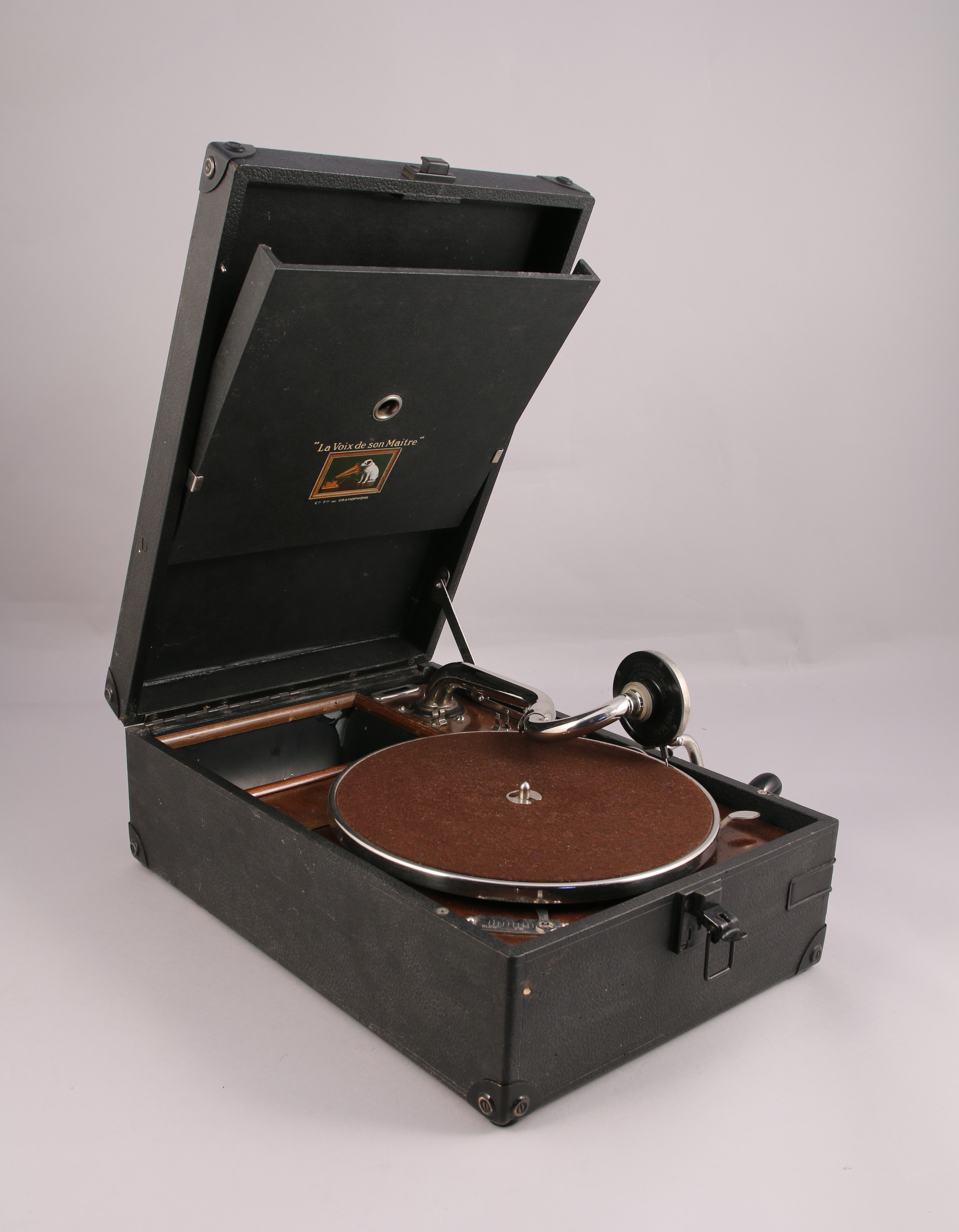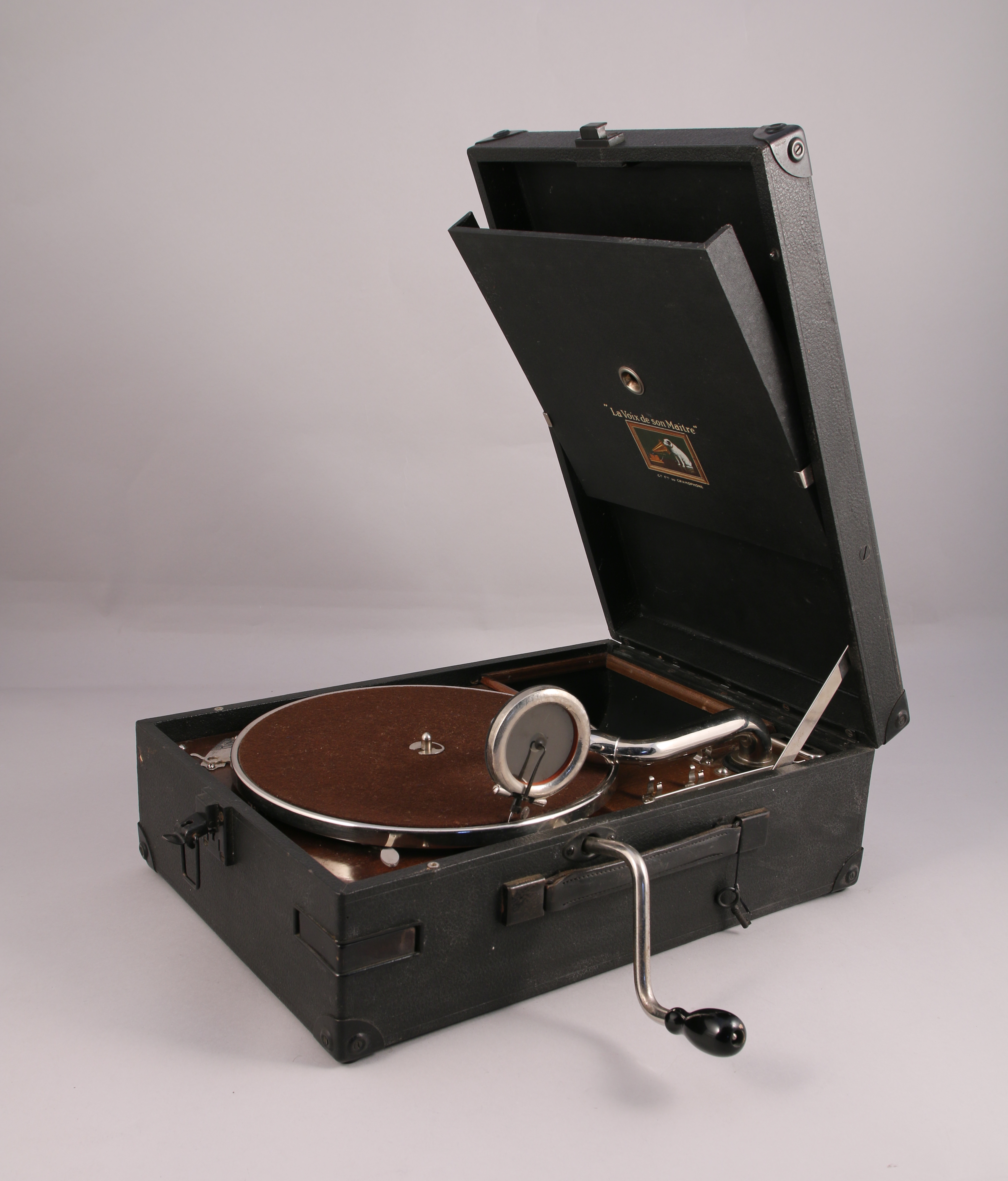 PHONOGRAPHE "LA VOIX DE SON MAÎTRE" dans sa valise de transport.