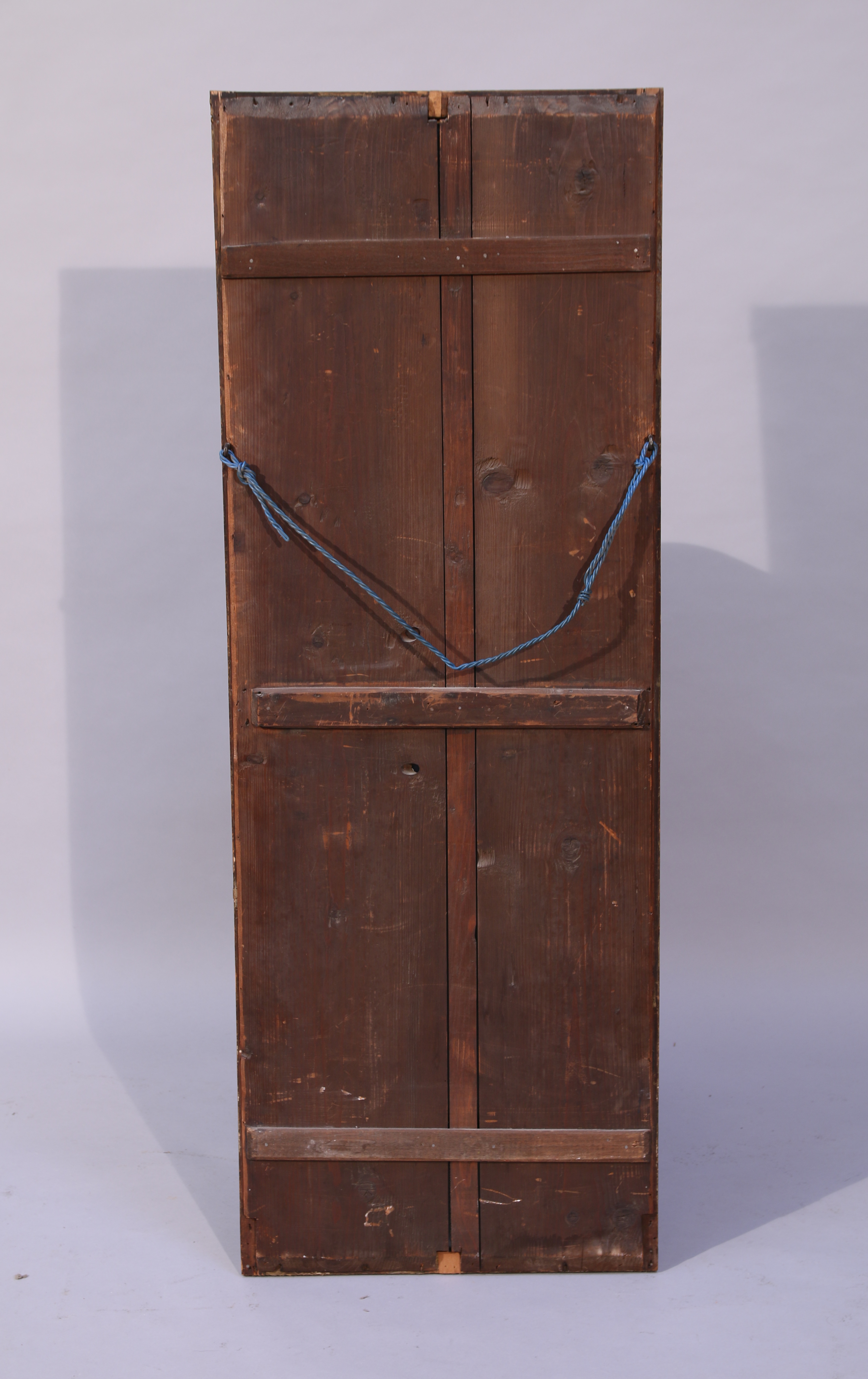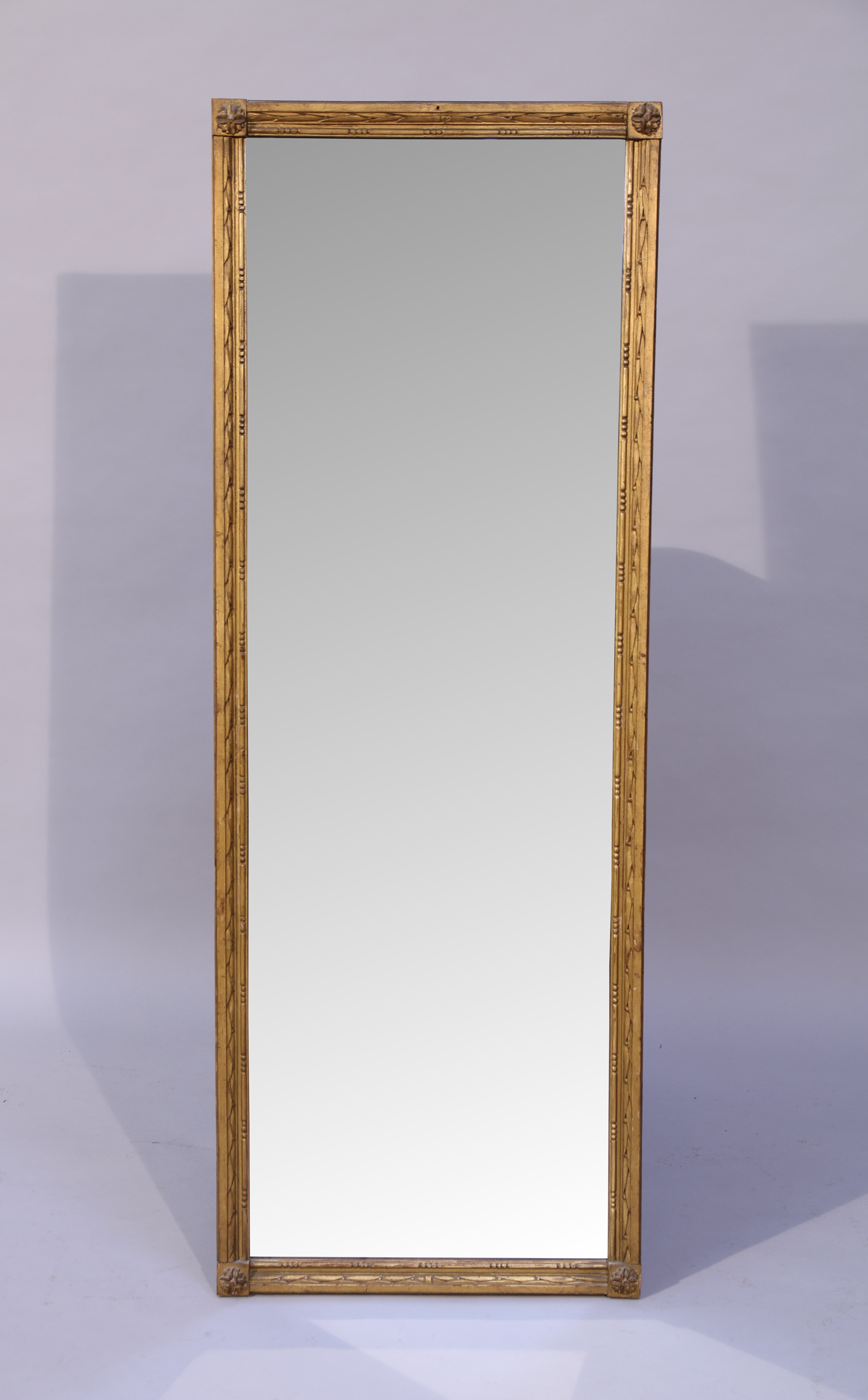 GLACE en bois doré à décor de frise de perles et feuillage stylisé, ornée de marguerites dans les coins.