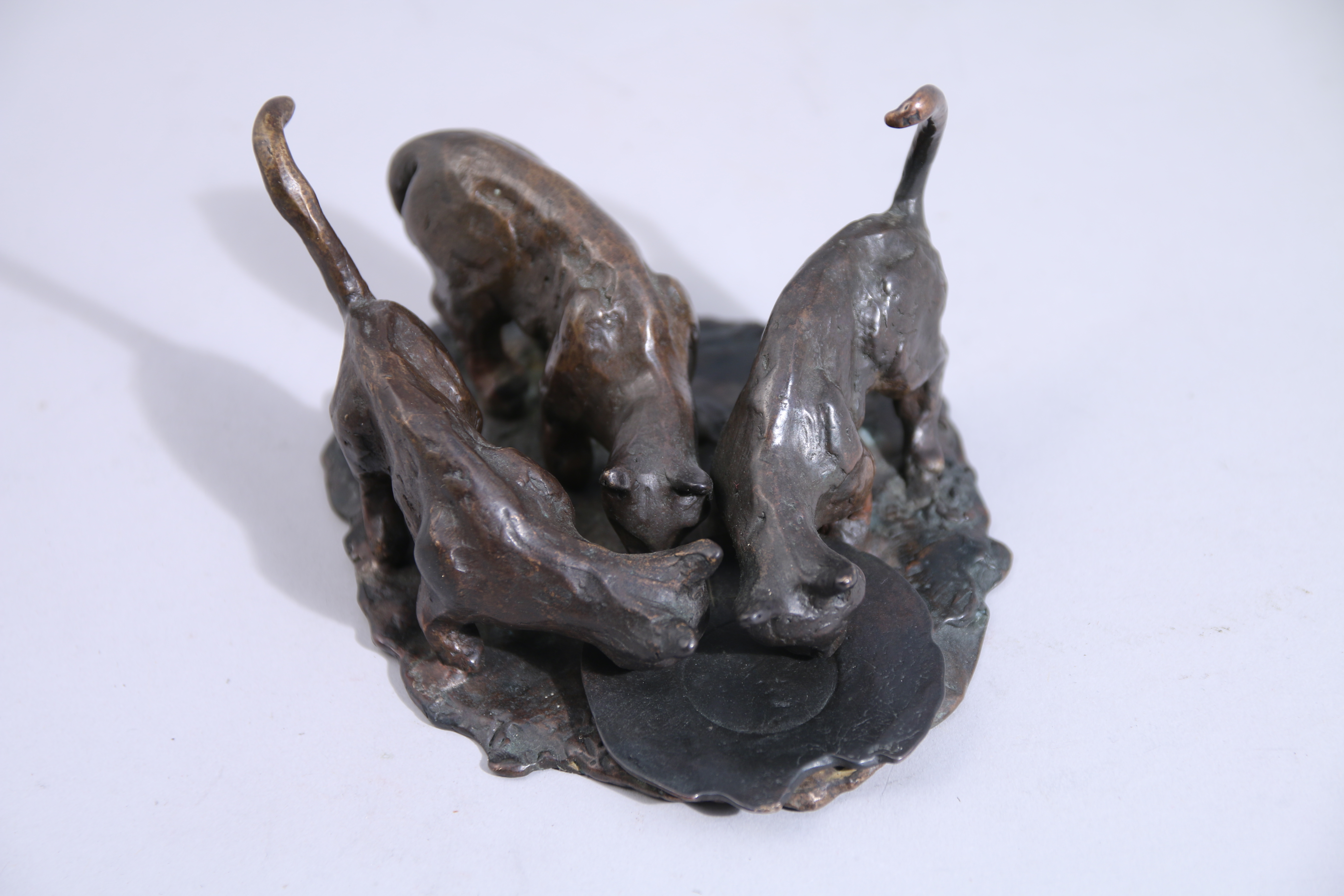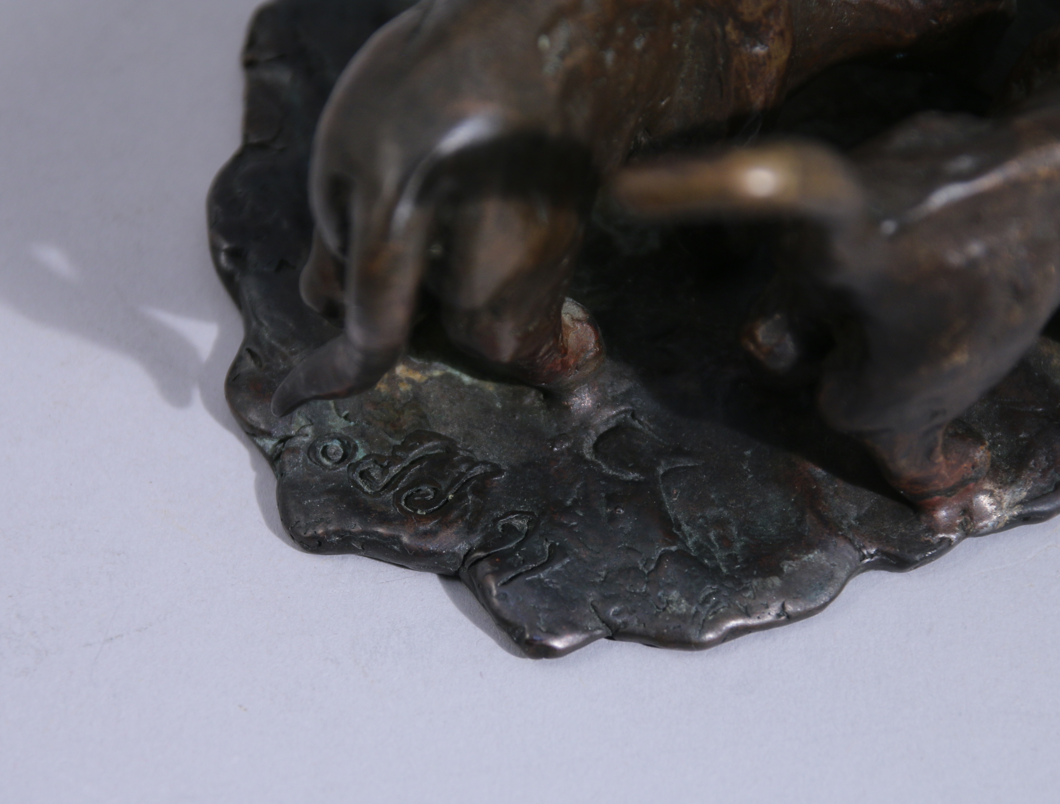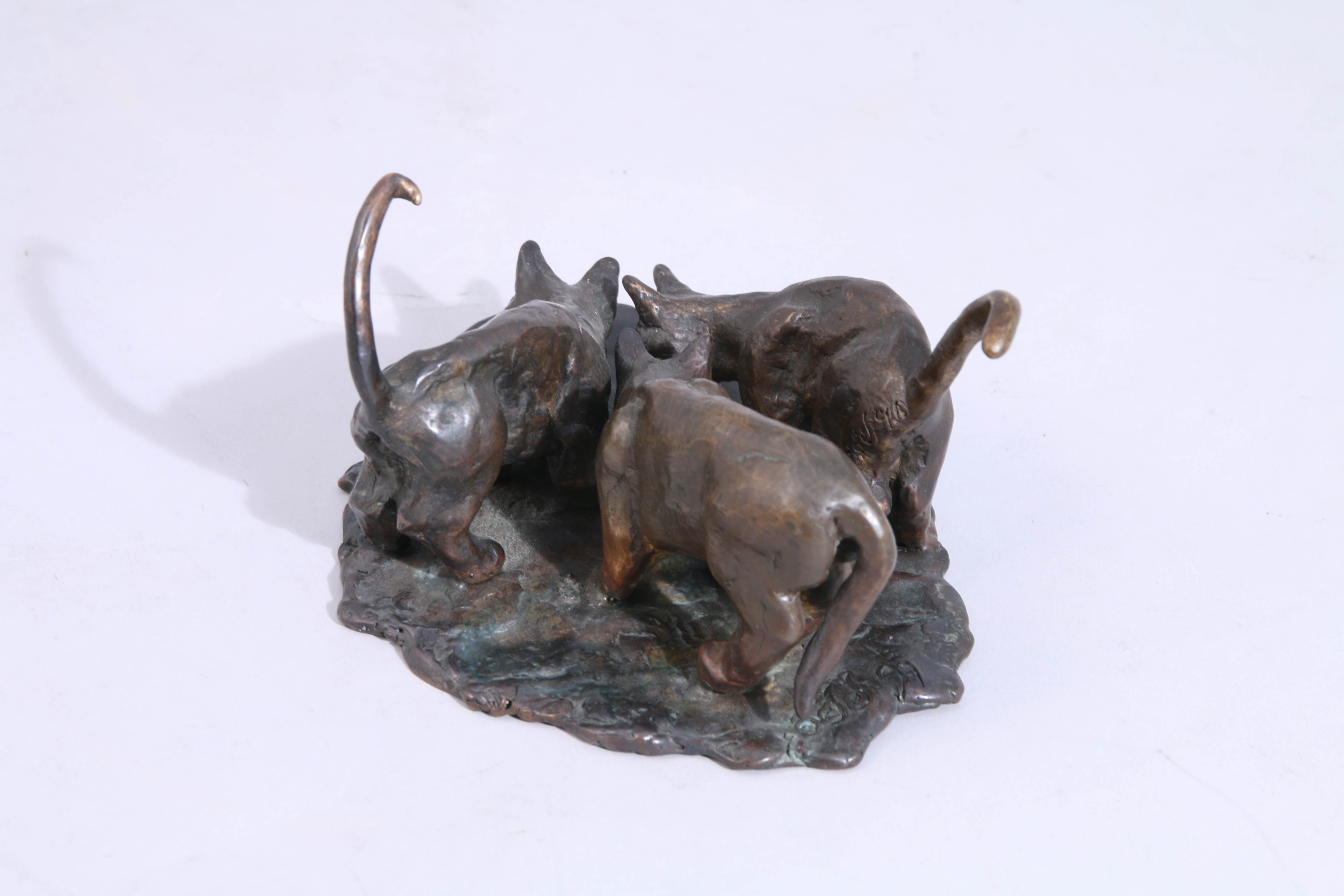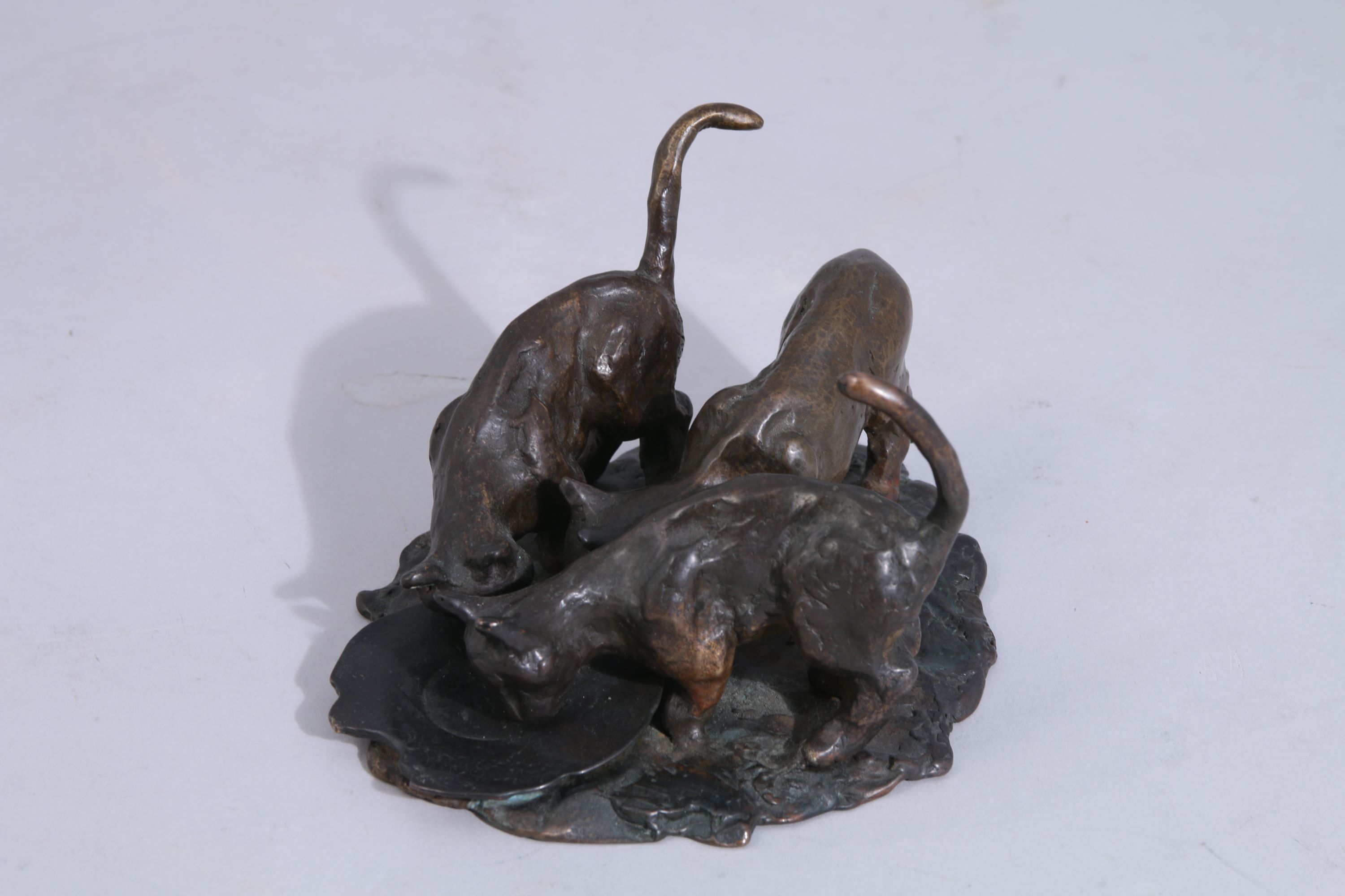 Bronze signé "odd" et daté 90 sur un chat et 97 sur la terrasse.