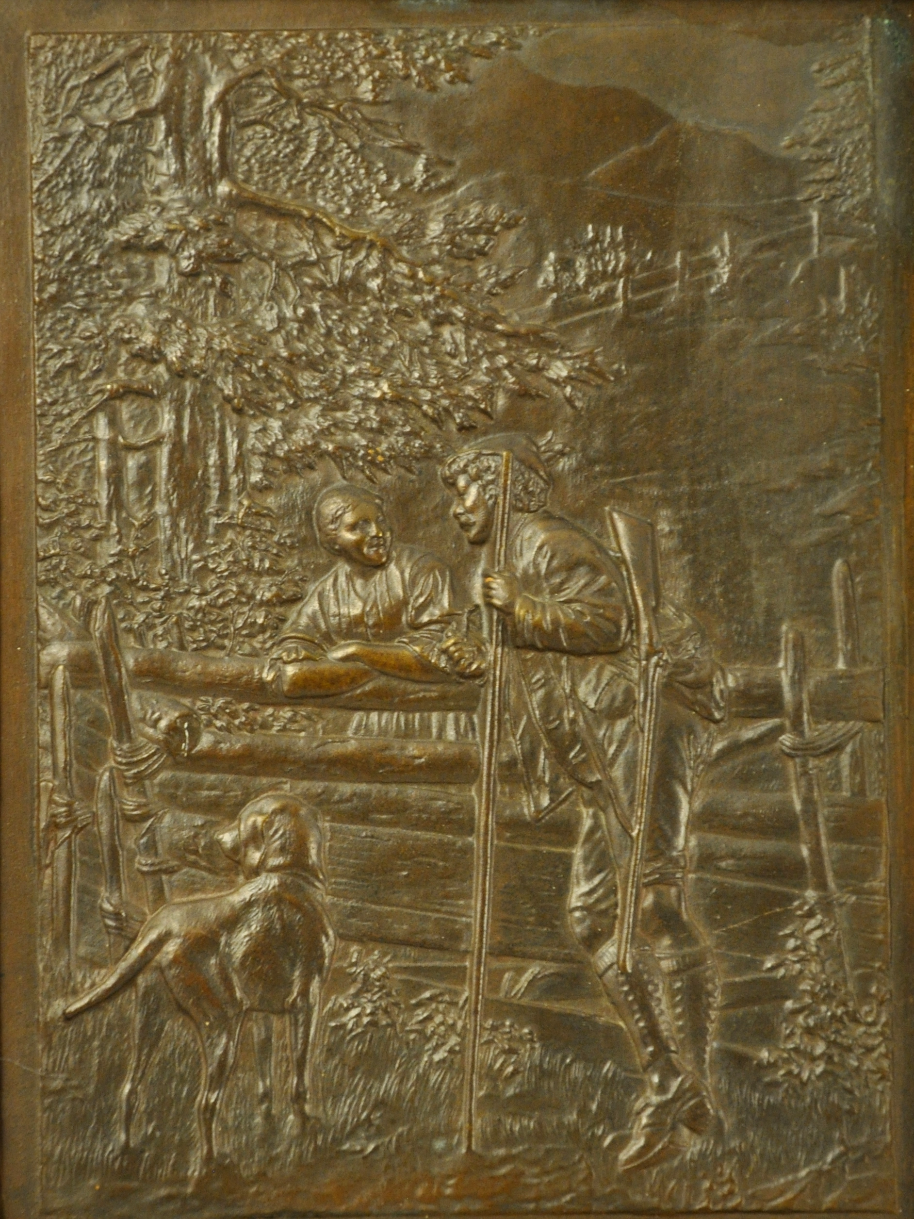 Deux bas-reliefs en bronze patinés.