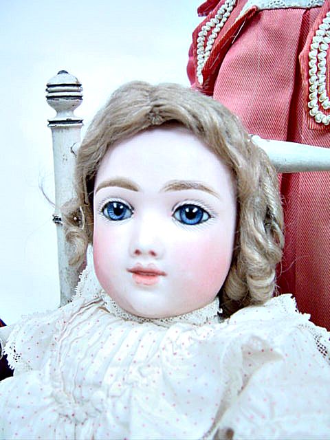 Bouche fermée, yeux de sulfure bleu, oreilles percées, beau corps articulé à 8 boules et poignets fixes. 38 cm.