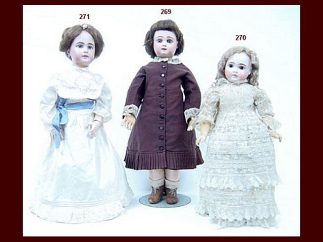 Bouche fermée, yeux fixes bleus, oreilles percées, sur un corps articulé SFBJ, habits et perruque. 62 cm.