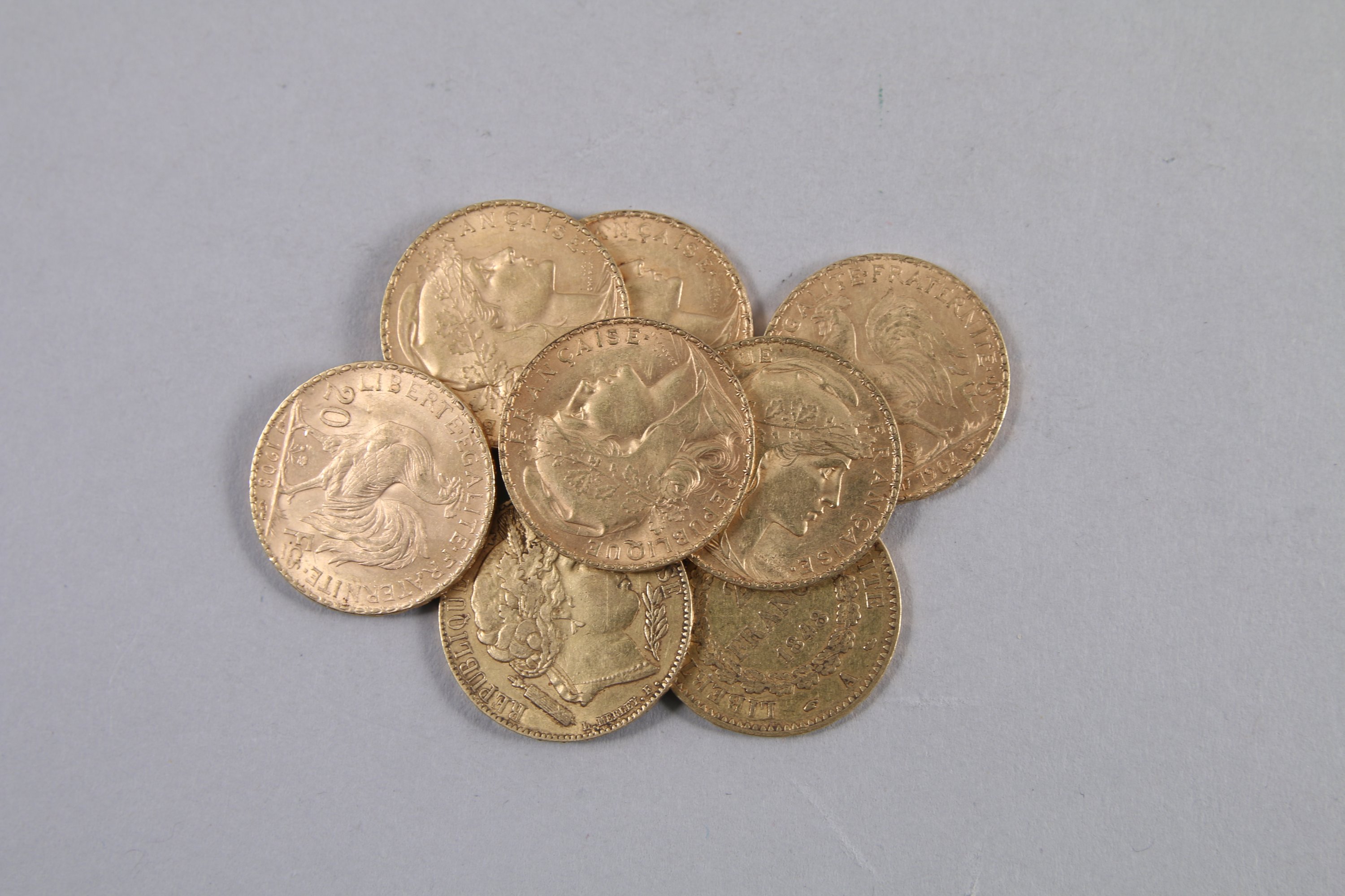 FRANCE. Réunion de HUIT PIÈCES de 20 F or :