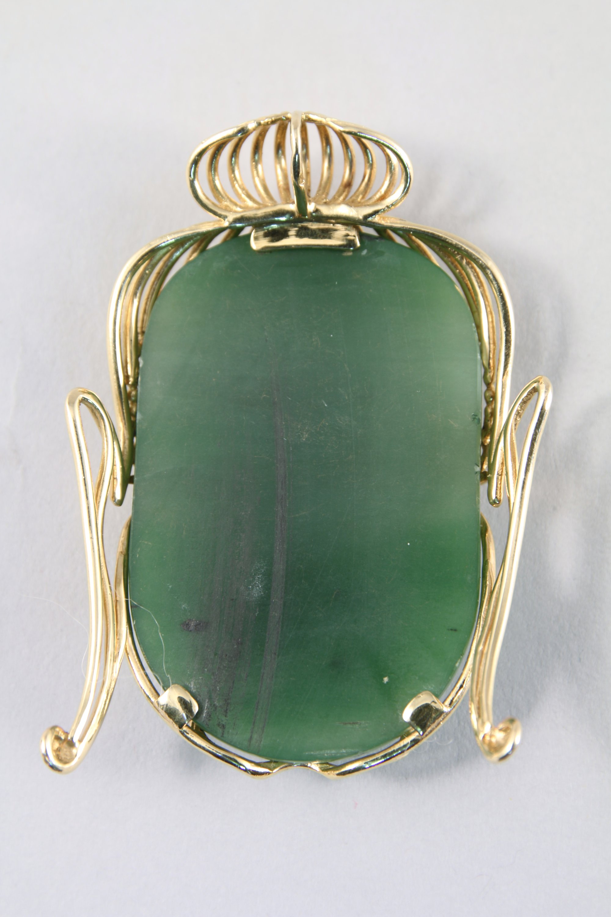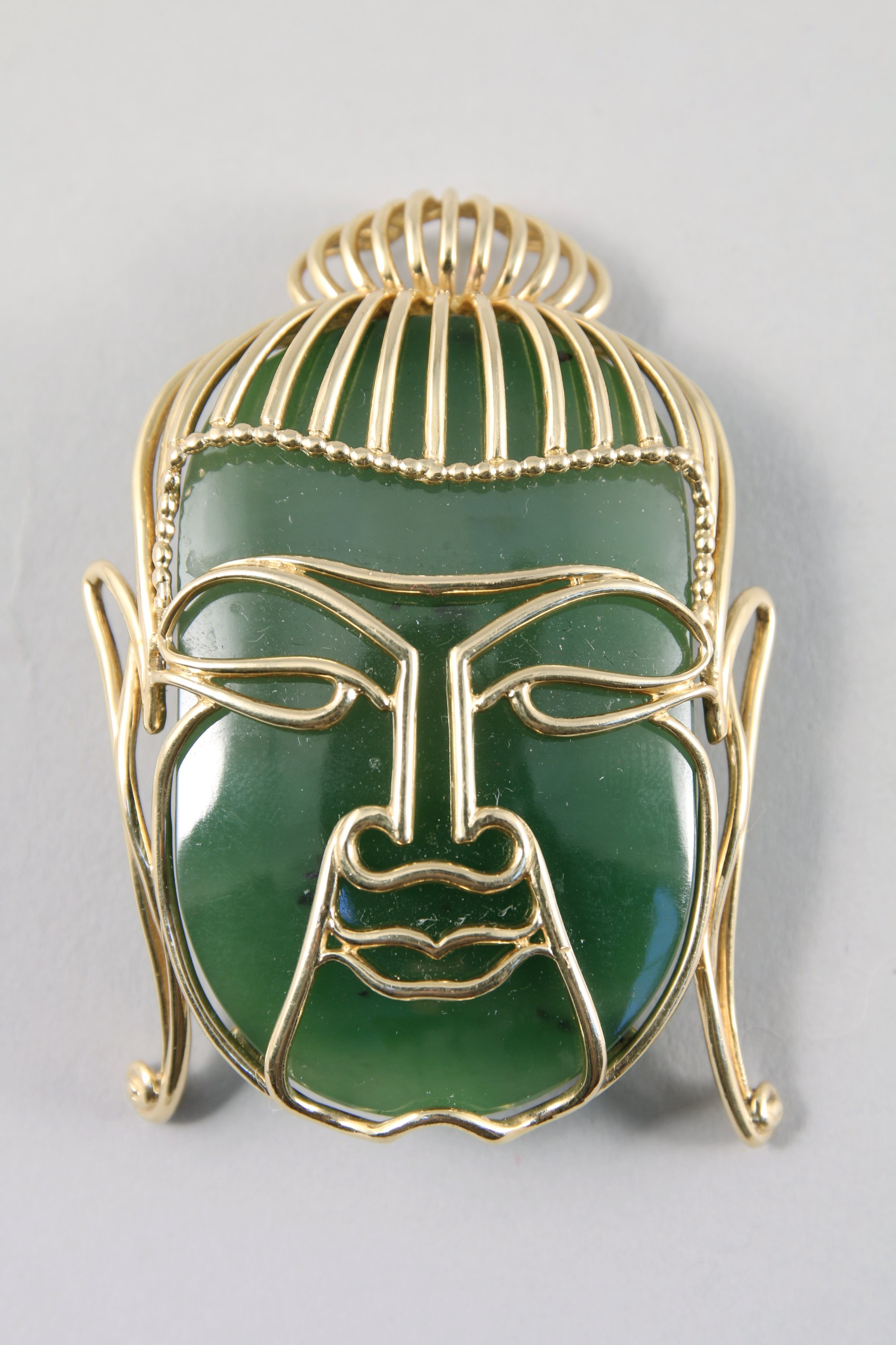 PENDENTIF en or jaune 750 millièmes et pierre verte type néphrite ou jade figurant une tête de bouddha.